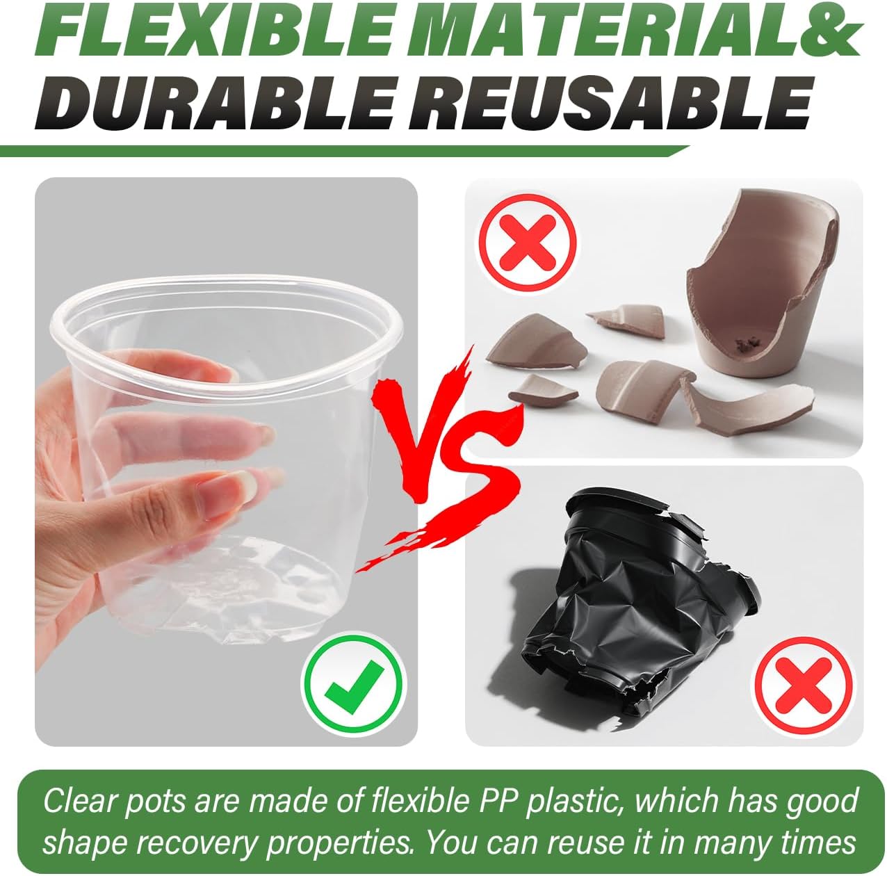 - 【Clear Plastic】Clear transparent plastic pots to watch the seeds germination, roots starting growing every day. Made of fresh new plastic PE, no ordor or harm for plants growing, BPA free.