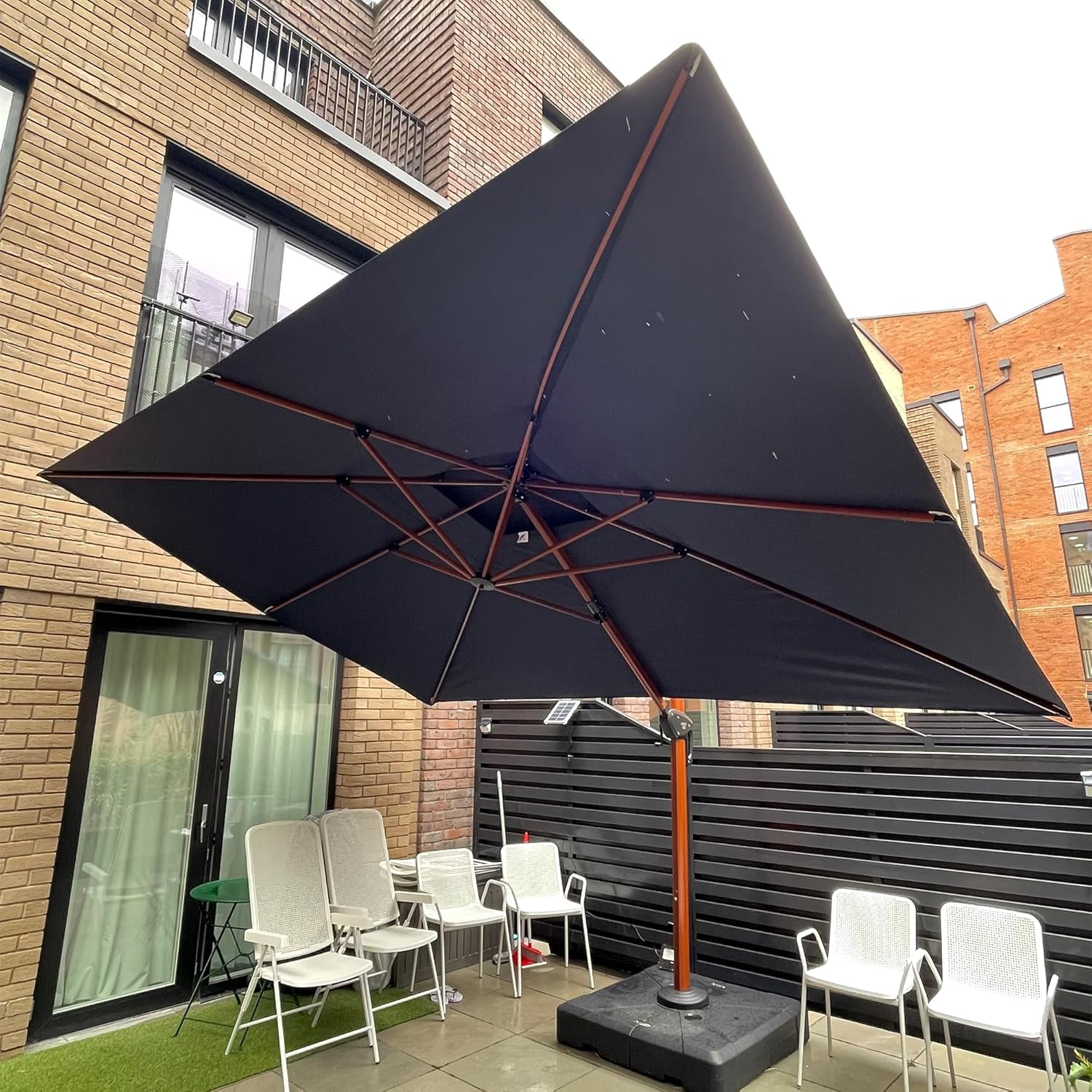 - This cantilever umbrella has unique handle design and crank system, 6 height and angle to choose, 360-degree rotation for easier shading area control