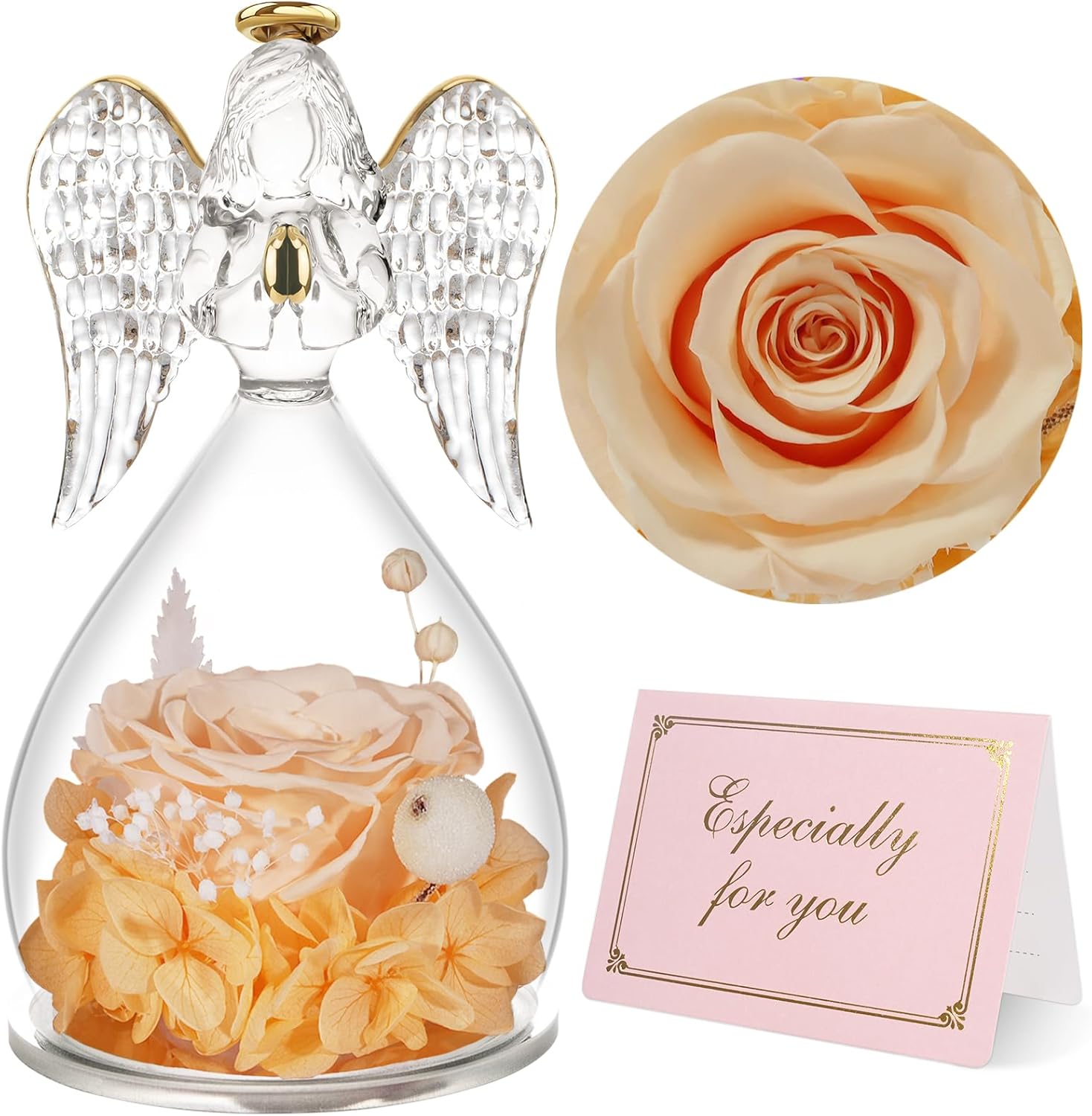 Yamonic Angel Figurine with Preserved Rose, Champagne, Gifts for Mom Grandma, Mothers Day, Christmas, Anniversary, Birthday