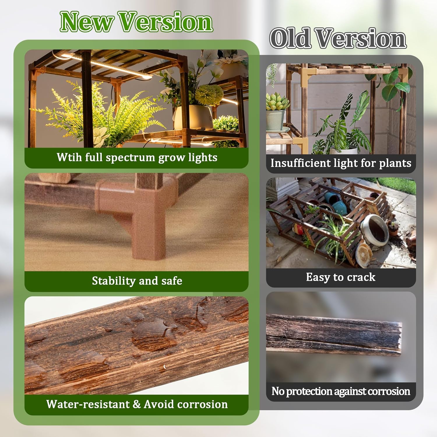 - 🌳Plant Shelf with Grow Light: Experience the convenience of our plant shelf with a built in full spectrum, timer controlled, and dimmable grow light. Your plants will thrive anywhere in your home without needing direct sunlight. Place them confidently in any room, and watch them flourish with ease
