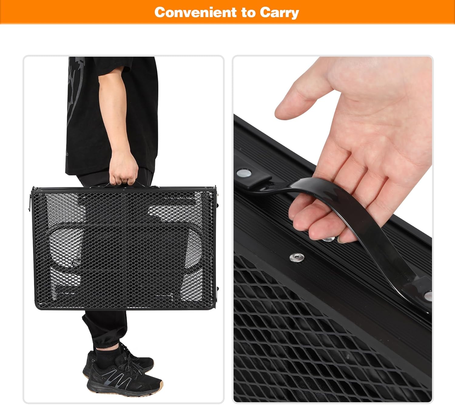 - [Superior Material] The table top of this folding aluminum grill table is made of powder coating iron mesh, which is wear-resistant for long time use. Its frame are constructed by Ο25mm aluminum alloy tubes, giving enough support to the table.
