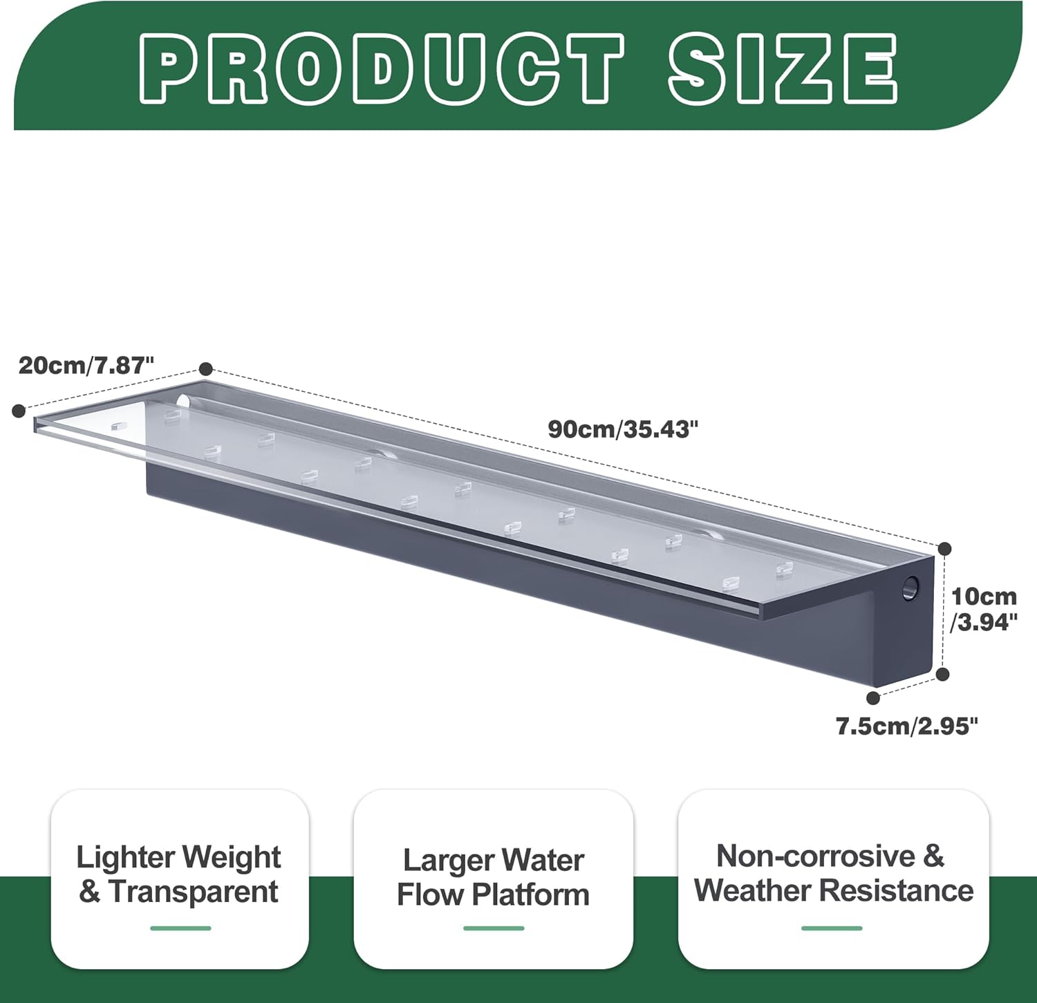 - 【Updated Water Flow Platform】- Unlike other narrow, short waterfalls, our updated pond waterfall features an integrated 8-inch wide water platform and 4-inch high water storage tank platform. This wider, longer design creates a stable, smooth water flow and surface so you can better enjoy the soothing sights and sounds of the cascading water. Waterfall does not include LED lights. Purchase them in our store.