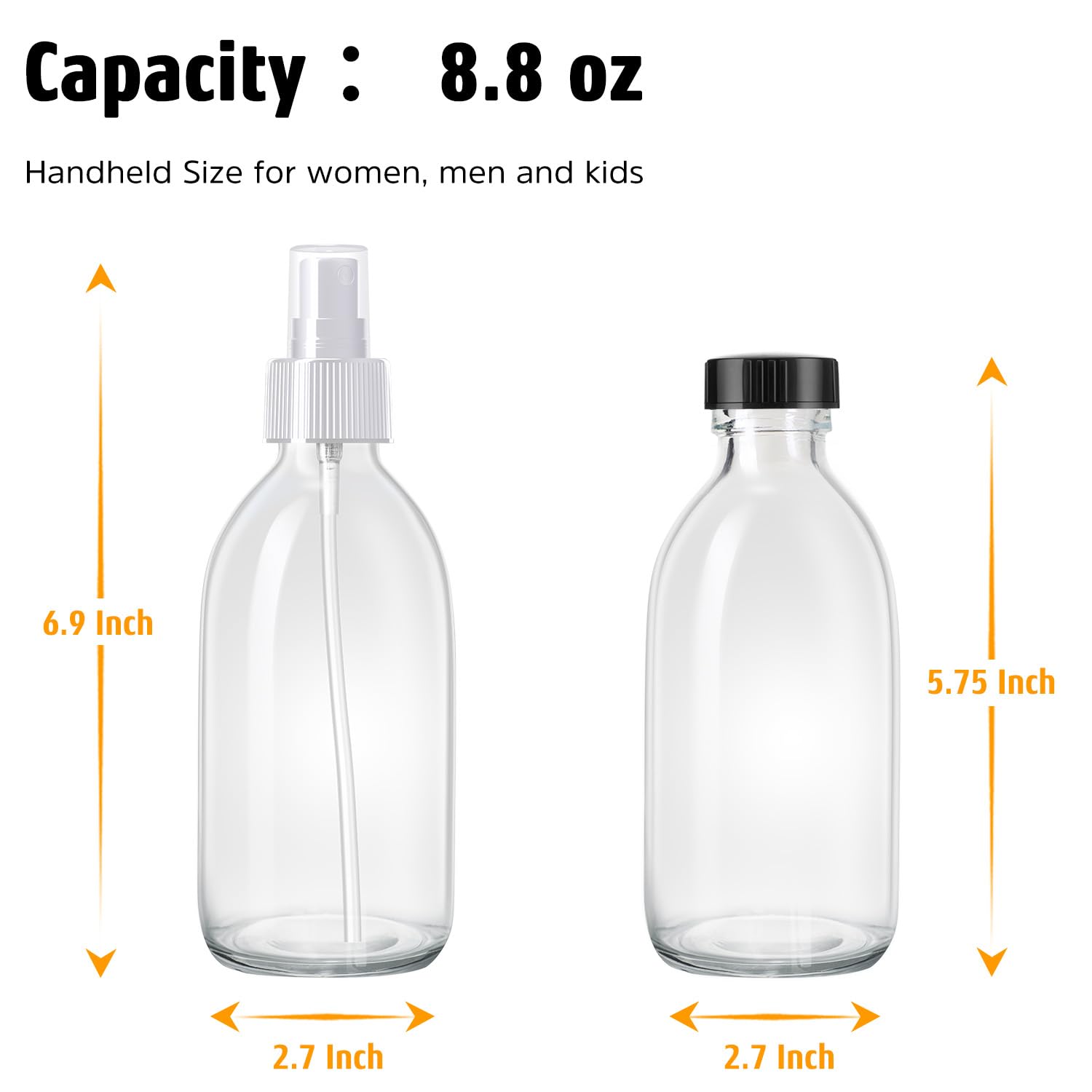 - More Accessories: Glass Spray Bottles Set includes 1 funnel for easy filling, reusable black and white labels for quick recognition and a user manual.
