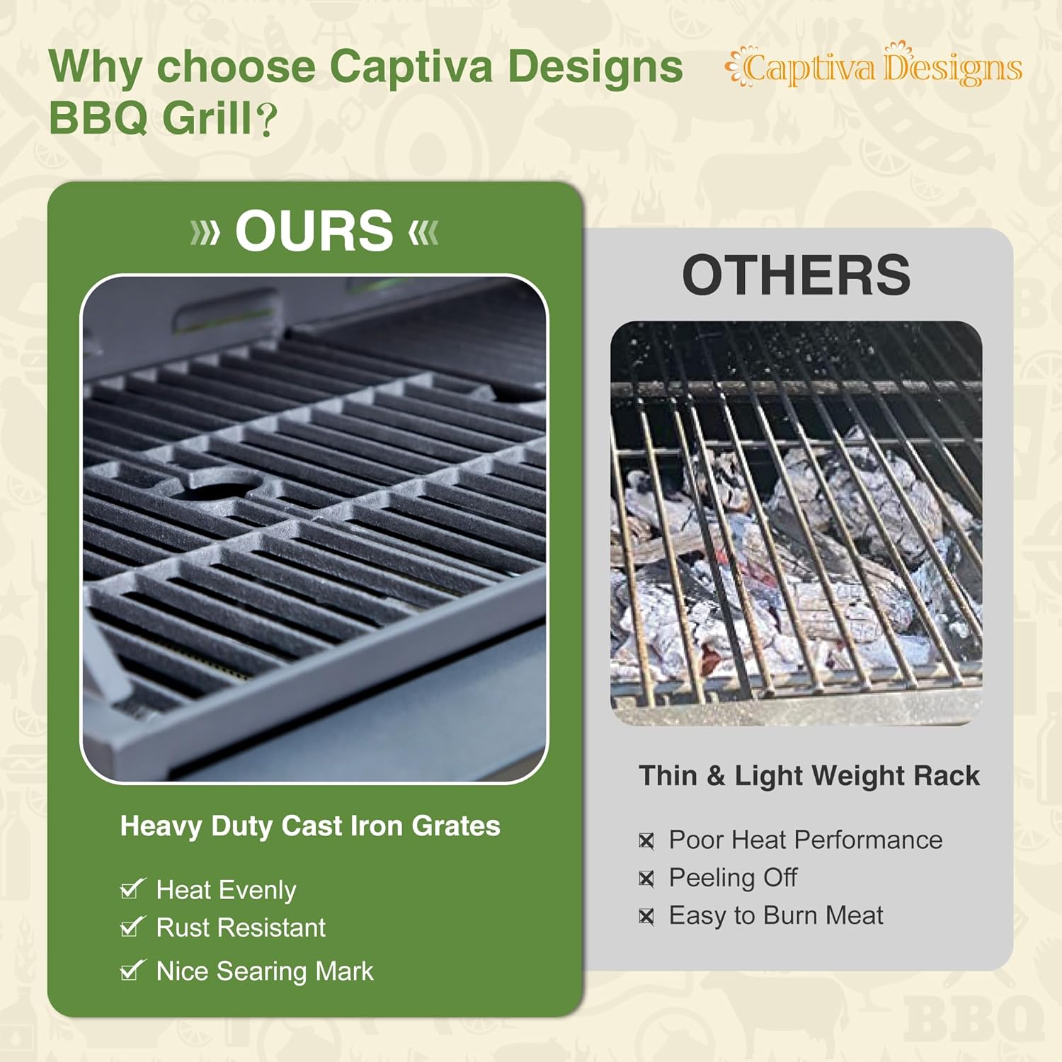 - ๐๐ฎ๐ซ ๐๐๐ซ๐ฏ๐ข๐๐: Captiva Desings provides you with professional customer service both before and after your purchase of propane gas grill. Please let us know if you have any problems , we will reponse you within 24 hours, you can rest assured that your investment will be protected