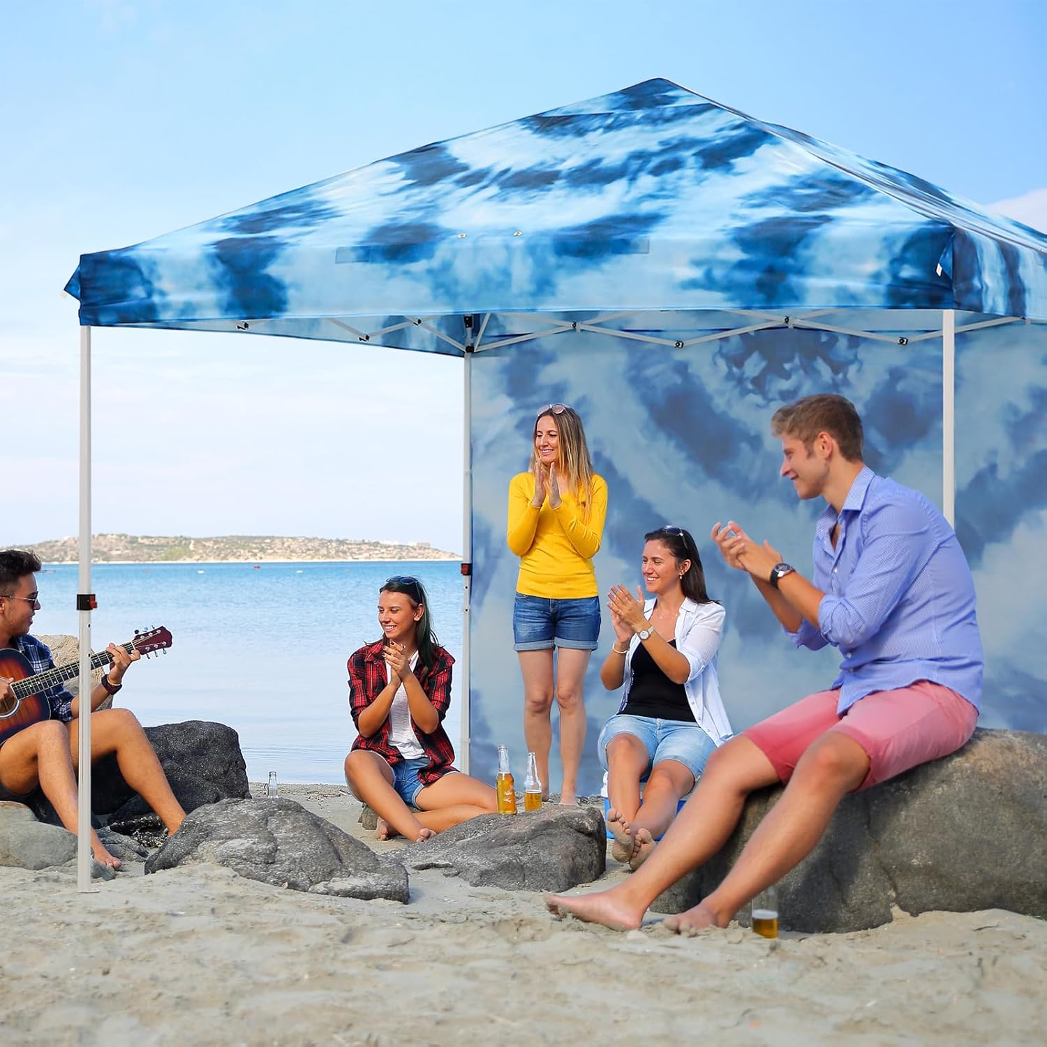 EAGLE PEAK Pop Up Canopy Tent with 1 Sidewall, Easy Setup Event Tent, Outdoor Sun Shade, Wheeled Carry Bag, Stakes and Guy Ropes, Instant Canopy 10x10, Tie Dye Blue