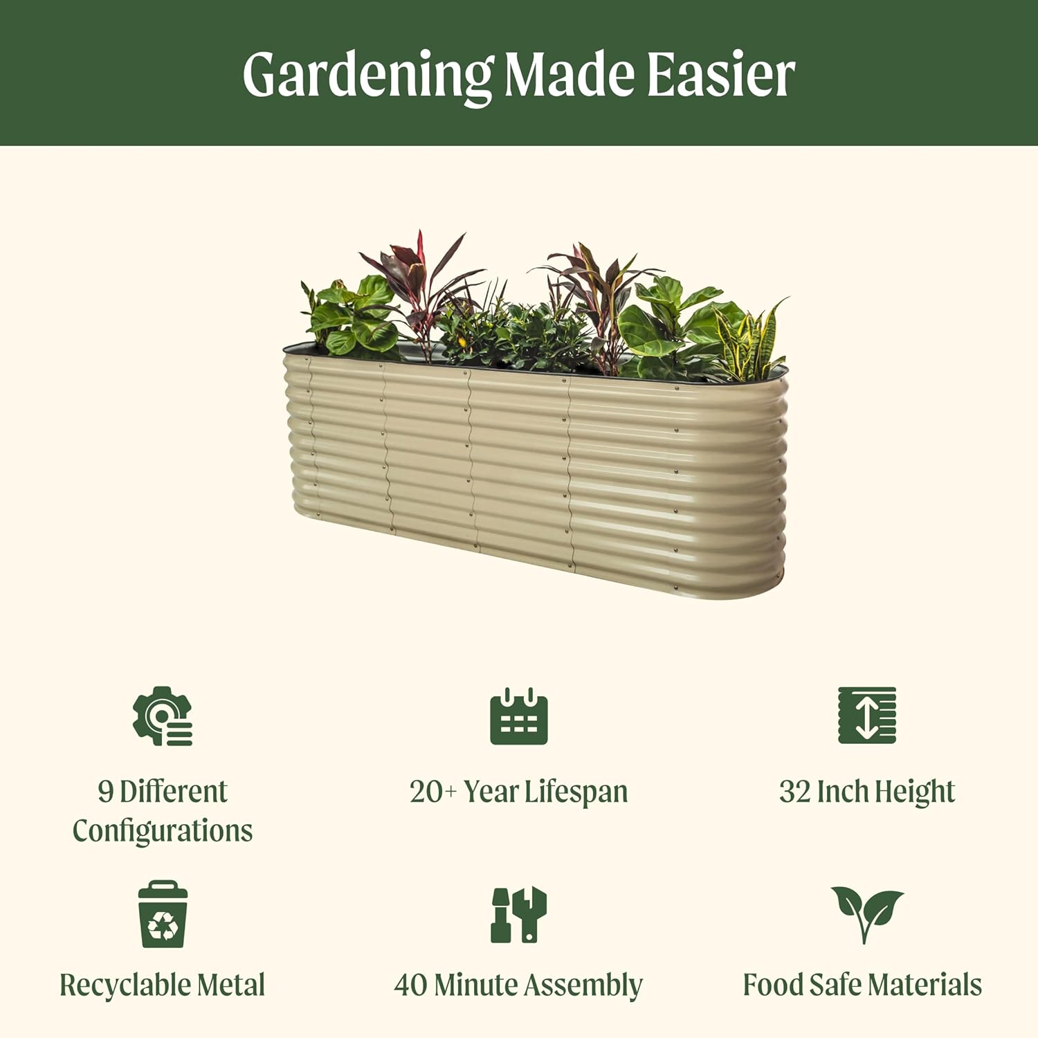 - Healthier Roots and Less Bending Down: At 32", the higher depth allows plenty of room for root systems to develop, better water drainage, and soil quality. It also eases the strain of bending down, one primary benefit of gardening in raised beds is that you donโt have to bend down quite as far when tending, weeding, or harvesting your plants