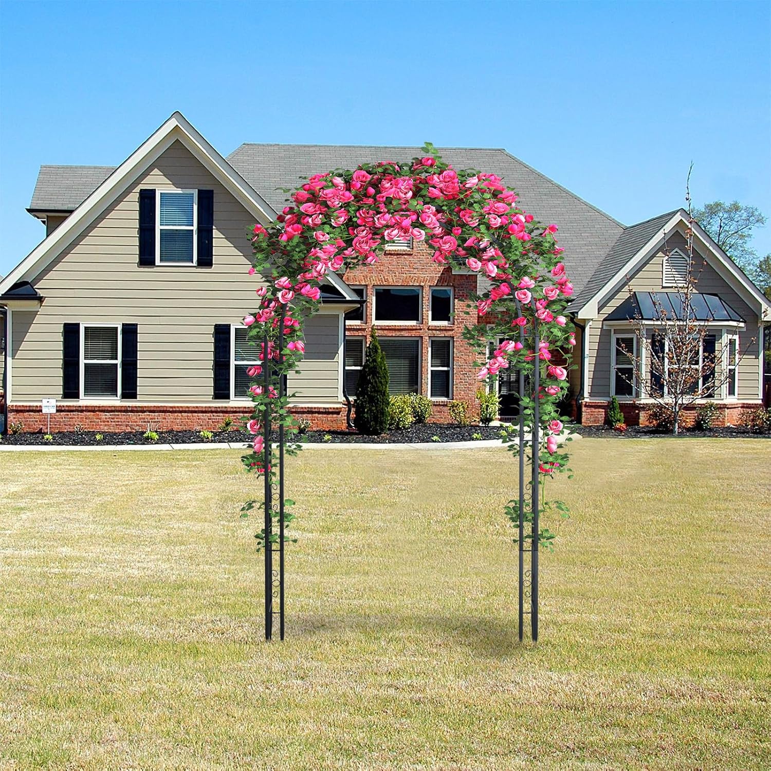 - 【Perfect for Outdoor Use】Our metal arch is mainly designed as an eye-catching decoration on garden, yard, patio or park. You can place it in front of your doorway or the pavement, making a perfect entry out of it. Or you can use it as a decorative backdrop for your wedding to bring you wonderful memories.Arch size: 57" wide x 88.6" high,7ft.