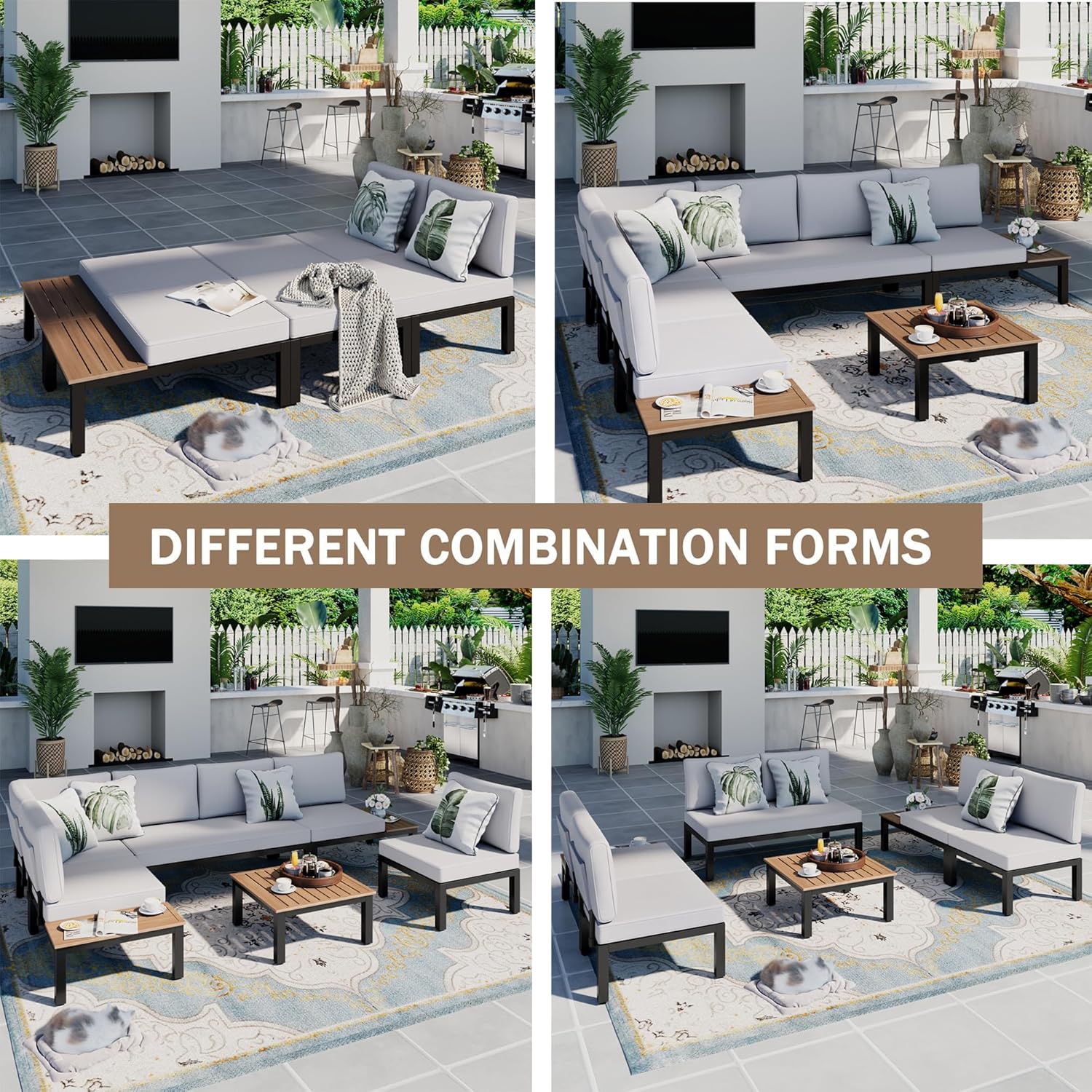 - 【Modular Design】: Our modular patio sectional set design allows you to arrange the pieces in multiple configurations to suit your space and preferences. Whether you want a cozy corner setup or an expansive seating area, this versatile design adapts to your needs, making it perfect for gatherings of any size