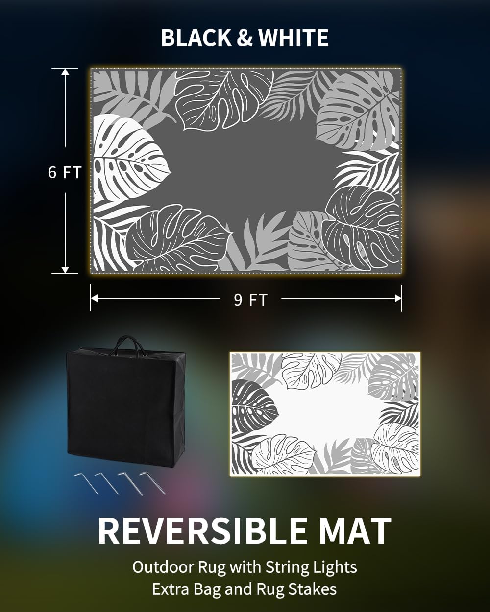 - Reversible&Wide Use: Outdoor rug featuring advanced black surface and visually expanding white side, patio rug creates perfect outdoor decor for relaxation and entertainment. The delicate flower pattern adds personality, making it ideal for gardens, patios, balconies, backyards, beaches, and indoor areas. Available in sizes: 5x8, 6x9, 8x10 and 9x12.