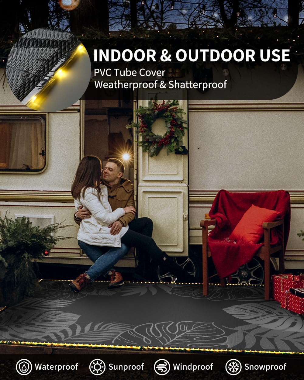 - RV traval&Camping: This camper must haves outdoor rug is ideal for picnics, gatherings, and RV trips! The lightweight outdoor camping carpet with foldable lines is easy to carry and saves space. Includes an extra carry bag and rug stakes for 6x9 ft, 8x10 ft and 9x12 ft. Grass-friendly, durable, and easy to clean, this outdoor rug enhances outdoor adventures.
