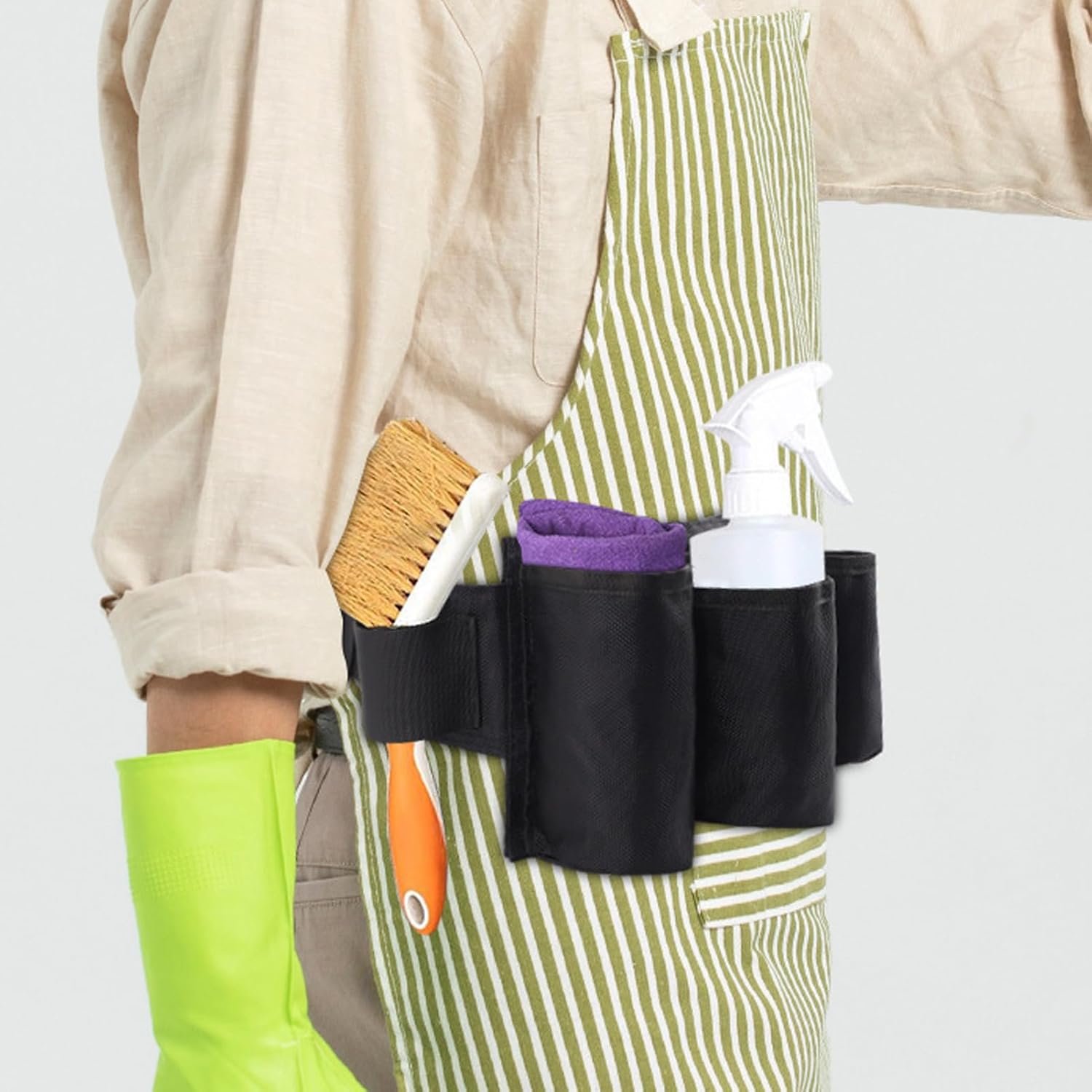 - Amplia aplicación: este delantal de herramientas de jardinería es adecuado para limpieza, limpieza, jardinería, hoteles, floristas, tiendas minoristas, camping, chefs, etc. Una hebilla fácil de usar hace que quitar y poner el organizador de herramientas sea muy fácil