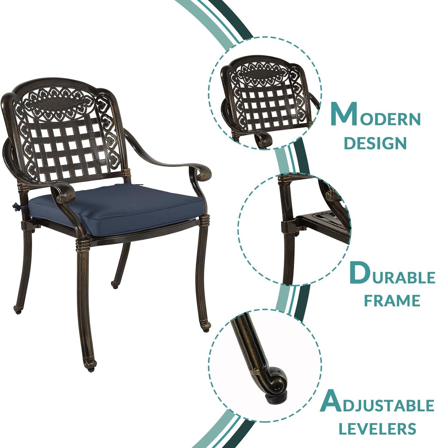MEETWARM 3 Piece Patio Bistro Set, Outdoor All-Weather Cast Aluminum Dining Furniture Set Includes 2 Chairs with Cushions and a 31” Round Table with Umbrella Hole for Garden Deck, Navy Blue