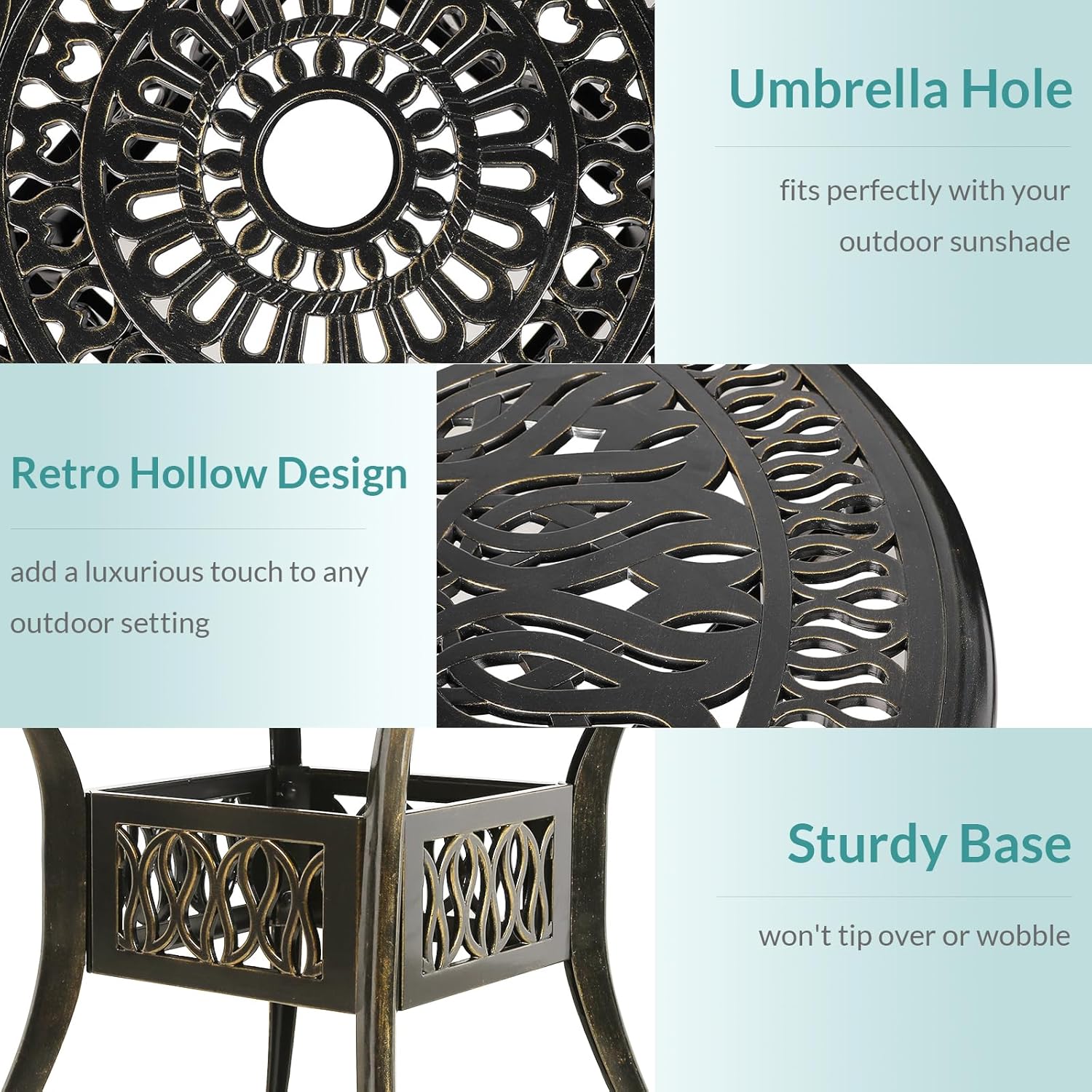 - 【Deck, Balcony & More】 - This dining set is the perfect addition to any space outside, like a backyard patio, outdoor deck, in a sunroom or garden, or near a pool, outdoor bar, grill, or BBQ pit. Built with a 2” diameter umbrella hole in the center of the table to add a patio umbrella for shade, you can insert umbrella in sunny or rainy day to enjoy leisure time(umbrella not included)