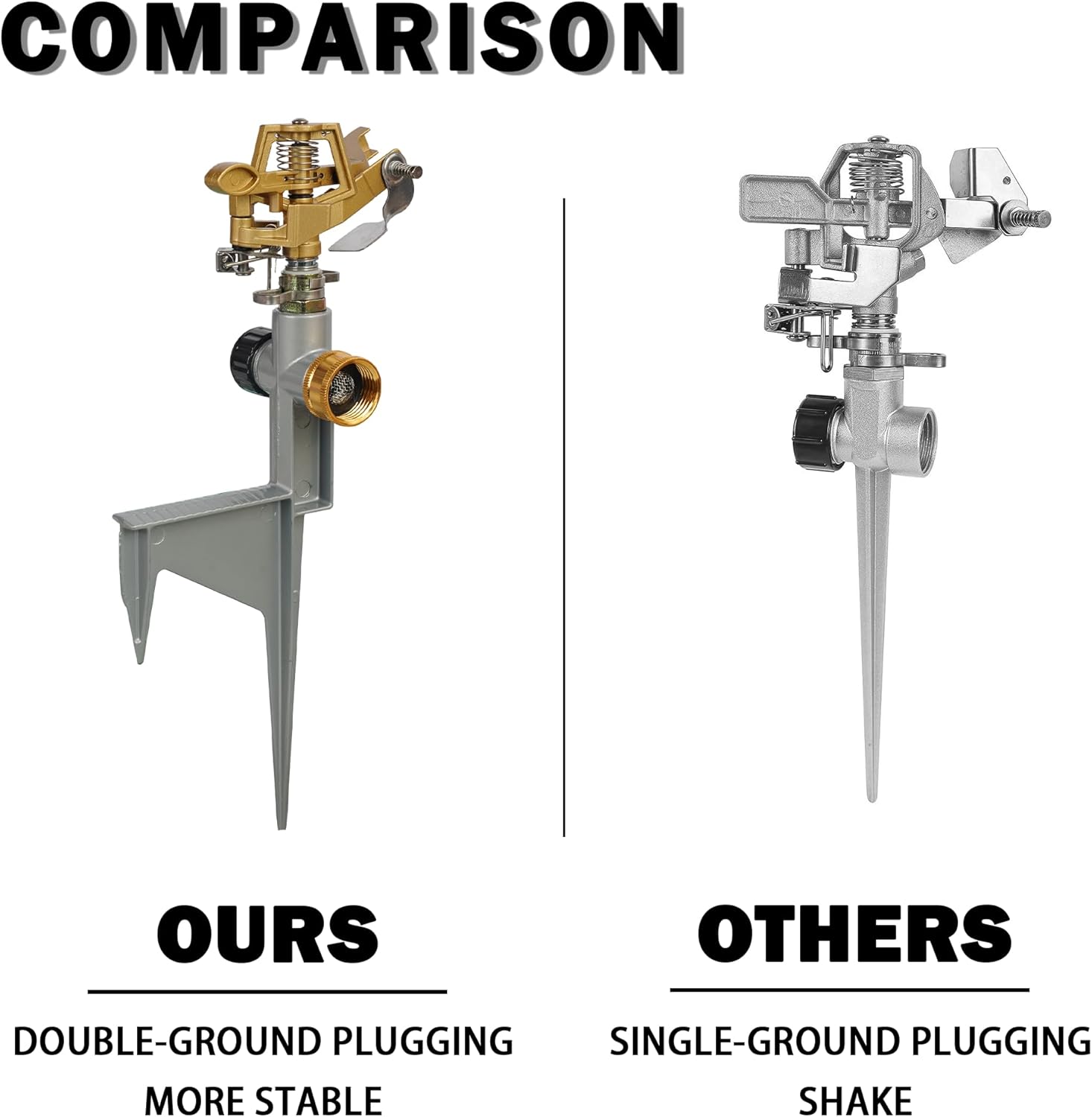 2 Pack Zinc Alloy Impact Sprinklers for Yard, Pulsating Water Sprinkler Head on Spike Base, Adjustable Water Sprinklers for Large Area Patio Lawn Garden Irrigation