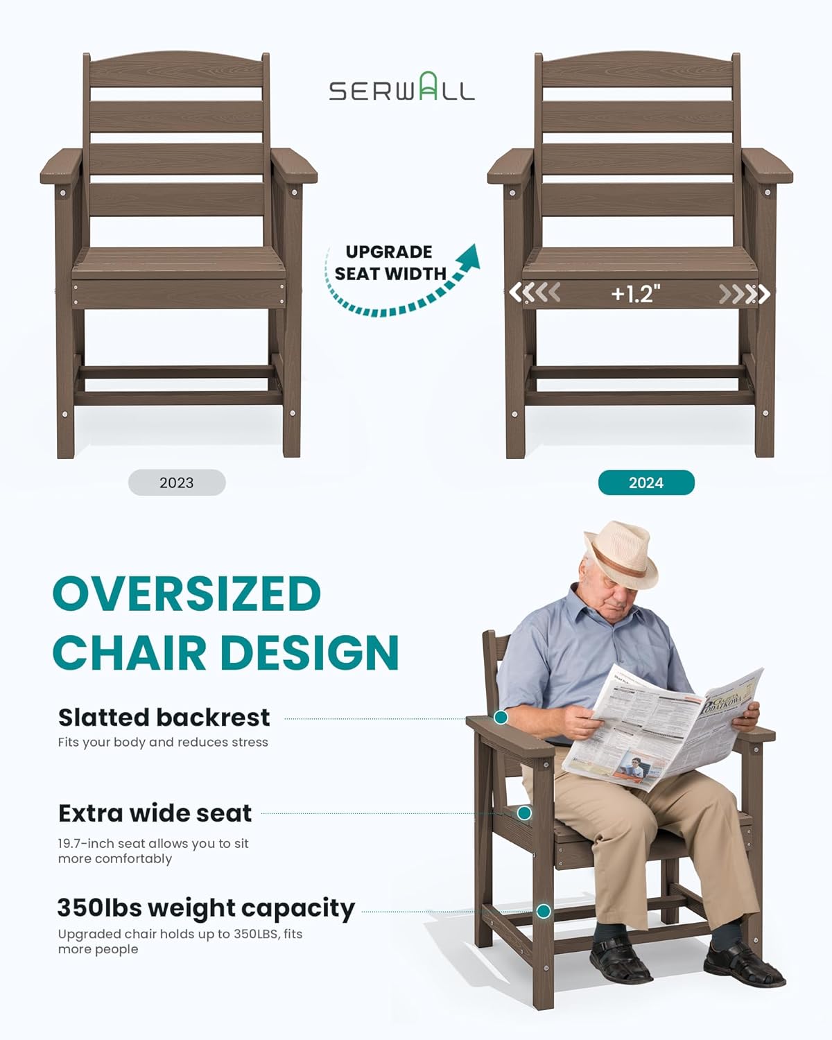 - 【All Weather Use】SERWALL patio dining sets are built to withstand the elements and provide long-lasting performance. The sturdy frames and high-density polyethylene materials ensure durability and reliability, allowing you to enjoy outdoor dining for years to come.