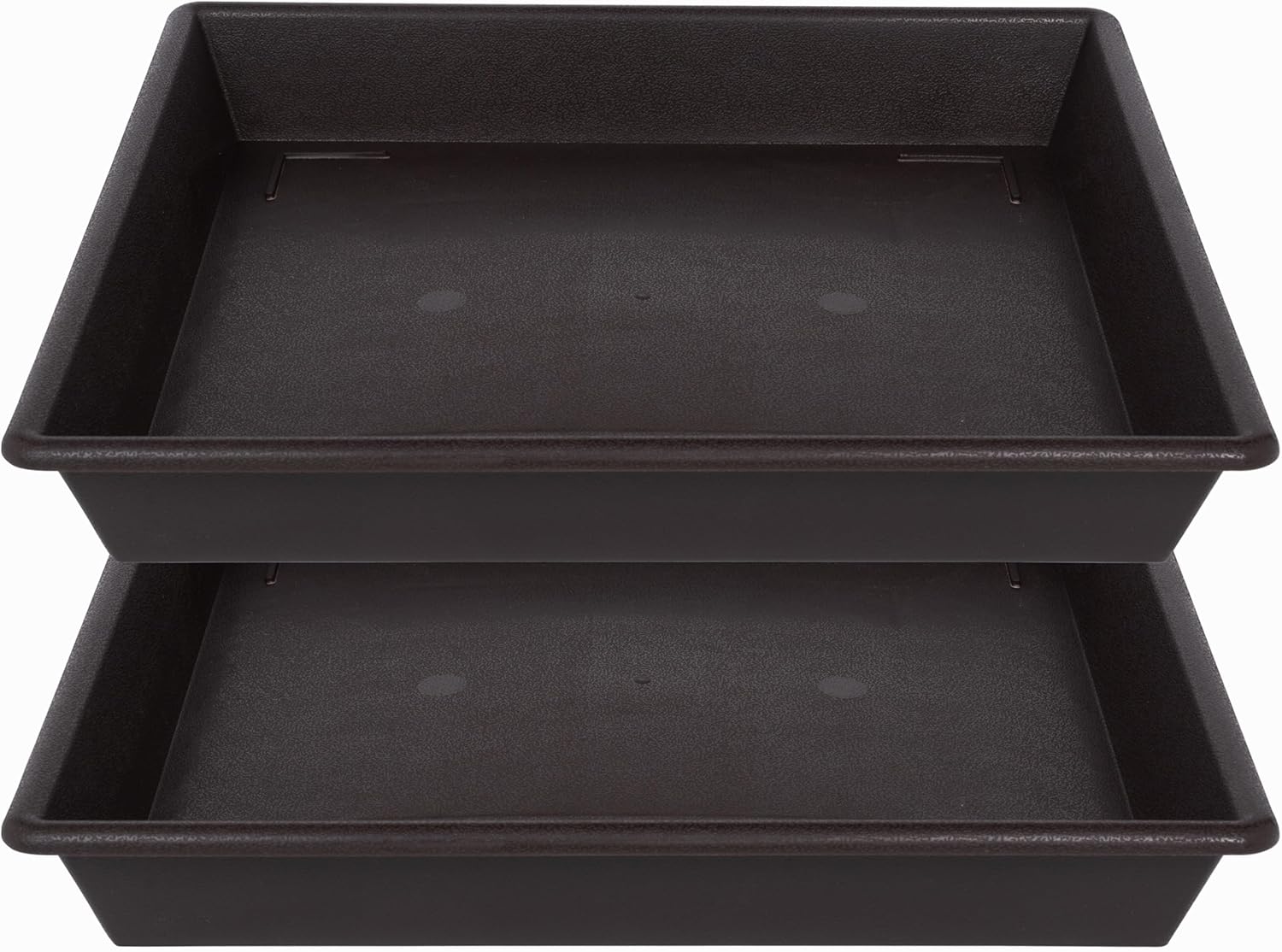 - Square Plant saucer 16 inch for indoors, This package inchudes 2 pack brown 16 inch plastic square plant saucers, Each plant saucer 16.5 inches at the top and 14.2 inches at the bottom, It can be used indoors and outdoors plant tray
