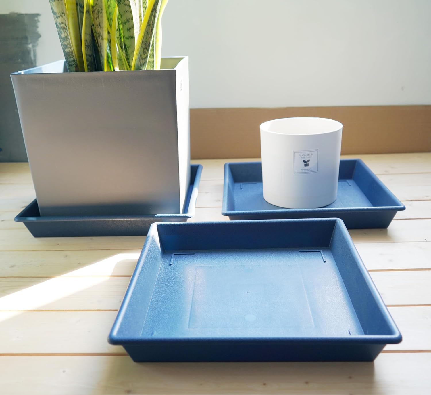 - Extra large Square Plant saucer 18 inch for indoors, This package inchudes 2 pack blue 18 inch plastic square plant saucers, Each plant saucer 18.6 inches at the top and 16 inches at the bottom, It can be used indoors and outdoors plant tray