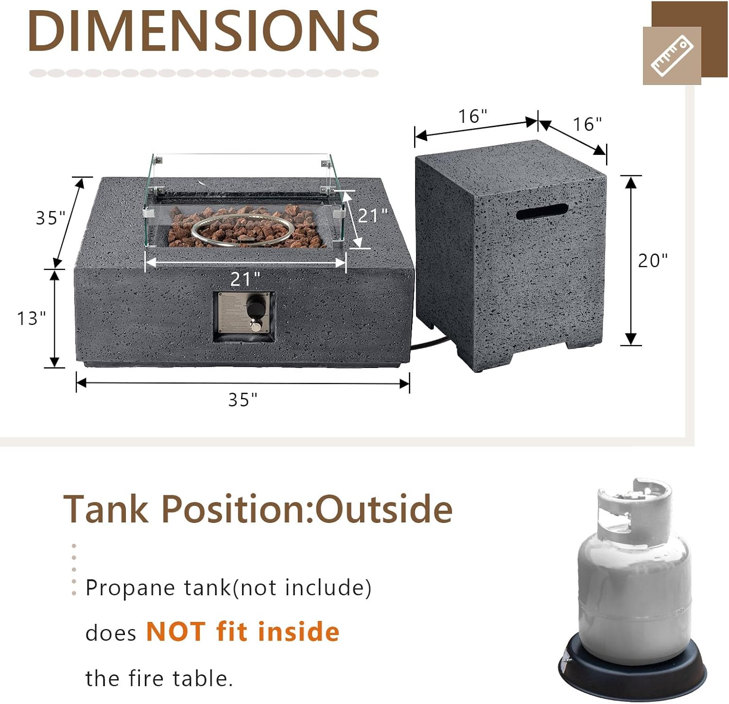 COSIEST Outdoor Propane Fire Pit Coffee Table w Square Faux Stone 35-inch Base, CSA Certified, 50,000 BTU Stainless Steel Burner, Free Lava Rocks and Rain Cover, Wind Guard, Tank Cover,Gray