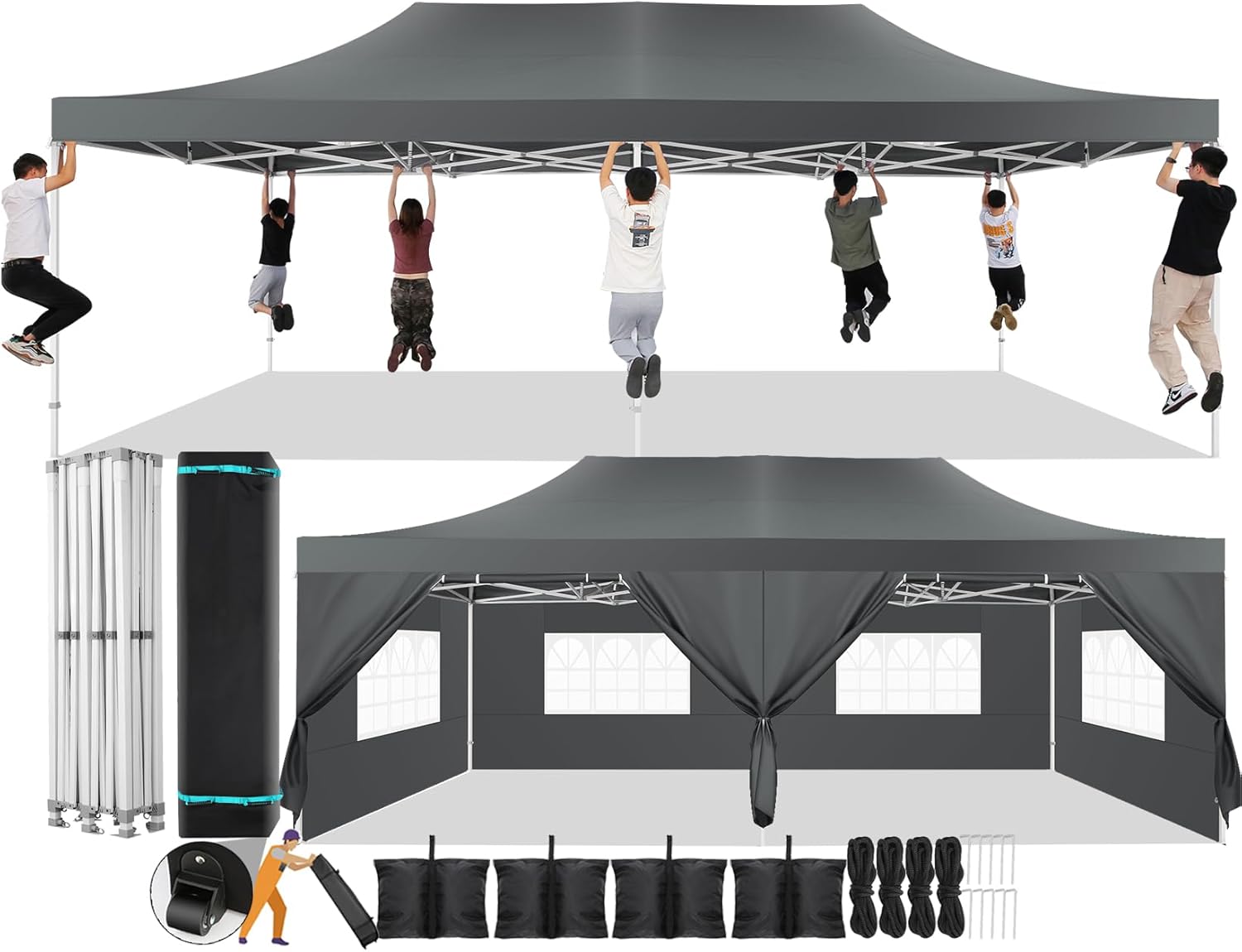 COBIZI 13x26 Pop Up Canopy with 6 Sidewall,Heavy Duty Canopy UPF 50+ All Season Wind Waterproof Commercial Outdoor Wedding Party Tents for Parties Canopy Gazebo with Roller Bag(13 x 26 ft Gray)