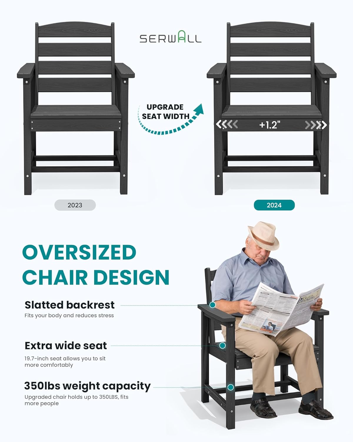 - 【All Weather Use】SERWALL patio dining sets are built to withstand the elements and provide long-lasting performance. The sturdy frames and high-density polyethylene materials ensure durability and reliability, allowing you to enjoy outdoor dining for years to come.