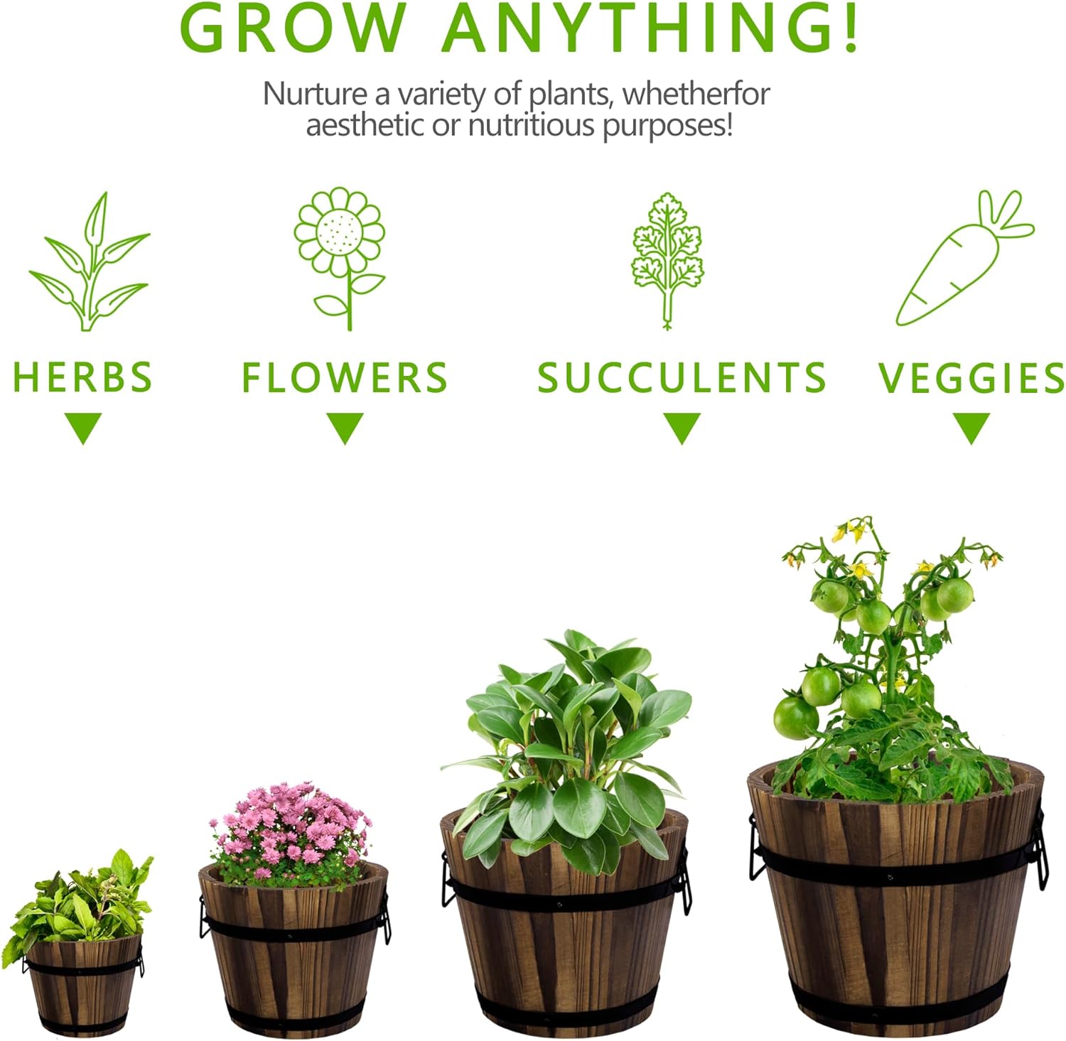 - 【Practical Design】Each bucket features 2 steel handles for easy lifting and carrying,two steel bands enhance the planter's durability. The distinct wood grain, brings a touch of nature to your living space and makes natural-looking greenery look lovely.