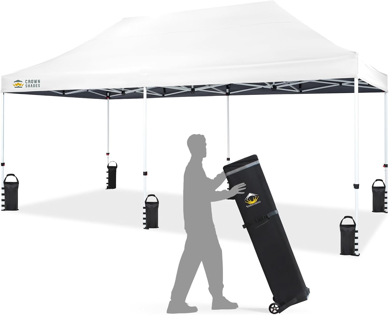 CROWN SHADES 10x20 Pop Up Canopy Tent - Commercial Canopy Tent with 400D Strength Oxford Fabric, Hexagonal Leg, 4 Upgraded Weights - Great for Trade Shows, Events, Parties & Commercial Use, White