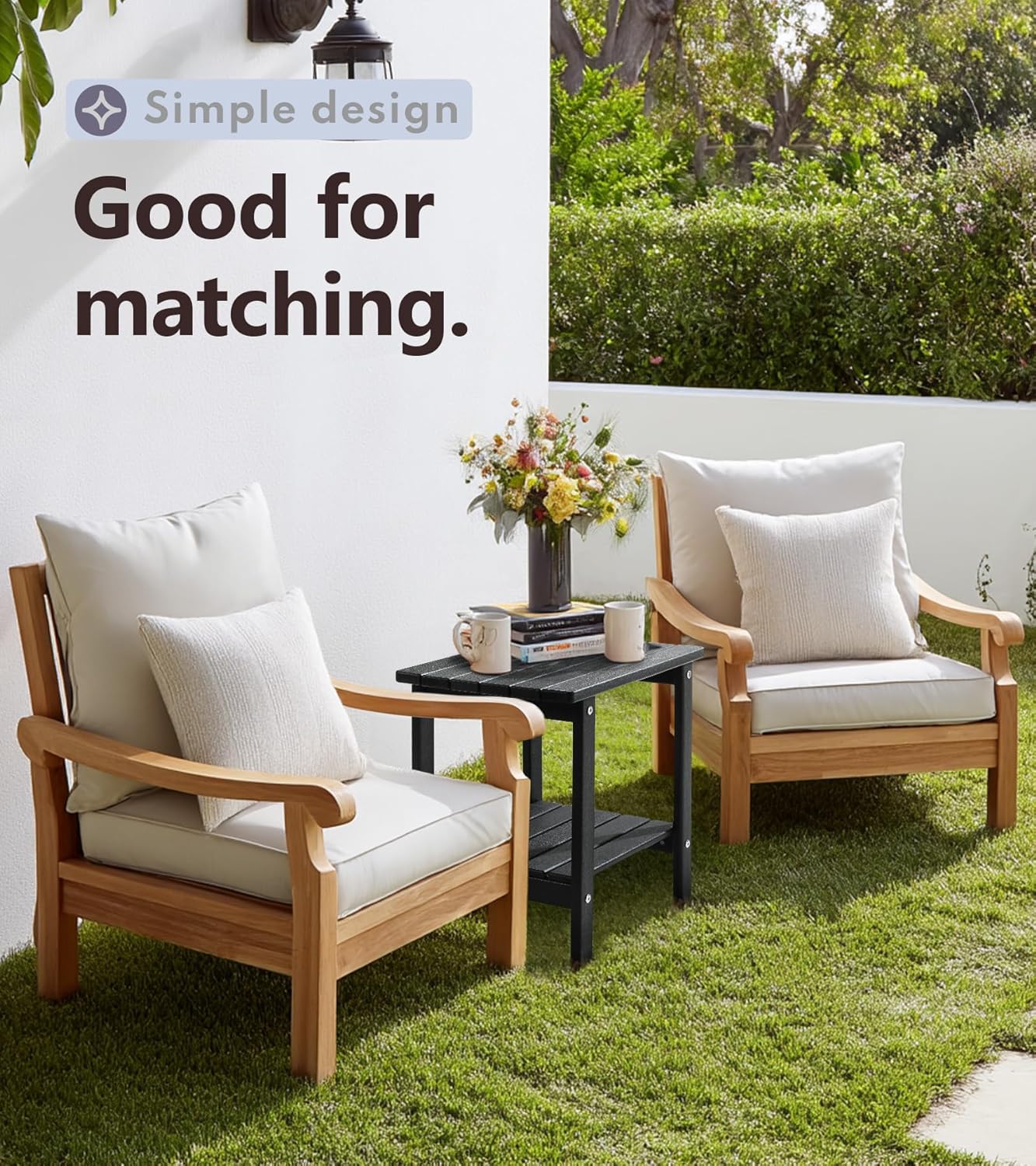 - 【Durable Material & Weather Resistant】The patio side table are made of sturdy and waterproof material HDPE, which is more weather resistant. The outdoor side tables can withstand a range of severe weather conditions like burning sun, strong wind or heavy rain yet retain the original color for years to come, never fade, rust, peel and rot.