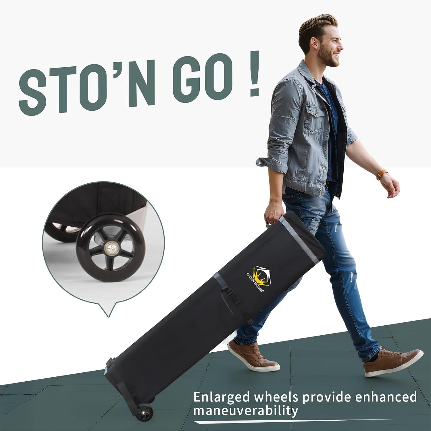 - CONVENIENT ROLLER BAG: This 10x20 pop-up canopy comes with a bag that has 4-inch wheels for easy mobility, featuring a spacious opening and a sturdy pull handle. The convenient pocket design can store 4 stakes and 4 ropes, making this canopy an ideal choice for any outdoor event