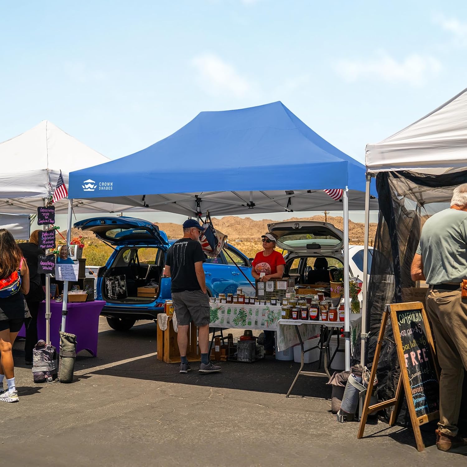 CROWN SHADES 10x15 Pop Up Canopy Tent, Thicken Frame Commercial Heavy Duty Tent, with 4 Sidewalls 8 Stakes & 4 Sandbags & 4 Ropes, Outdoor Canopies for Events, Parties,Blue