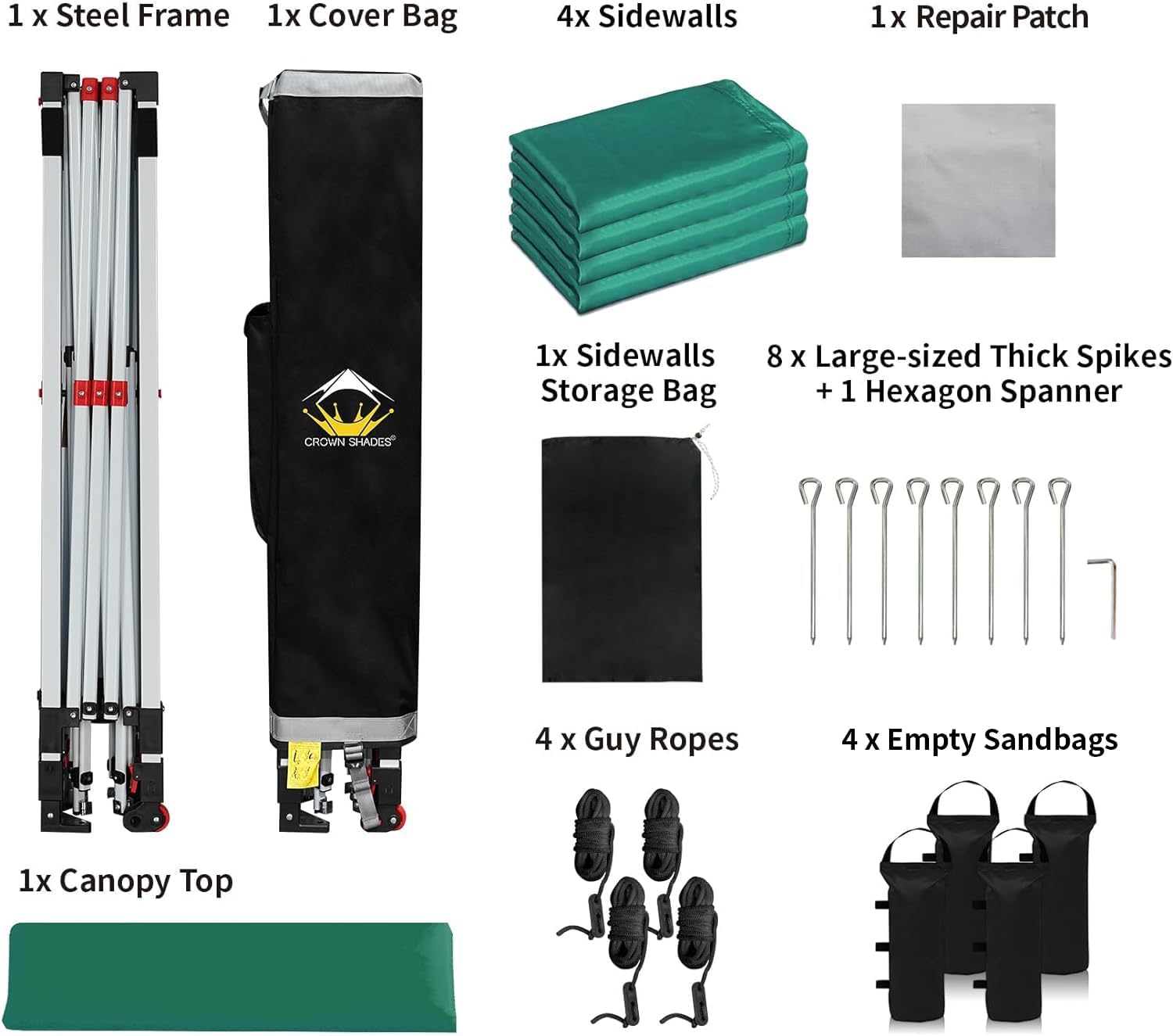 - [STO'N Go Bag]: Transporting and storing camping gear has never been easier than with the newly designed patented STO'N Go Bag. It comes equipped with a specialized pocket designed to hold 8 stakes, 4 guy ropes, and 4 removable wall panels. With its compact size, it can fit comfortably in most vehicles, so you can take your canopy with you wherever you go.