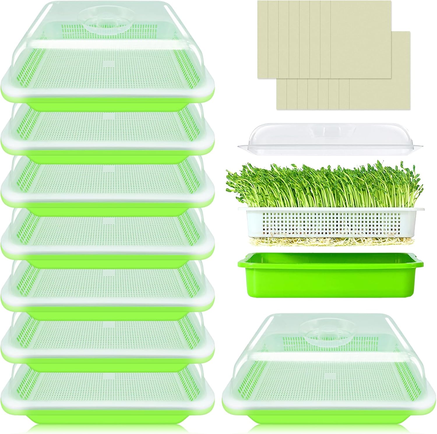 Legigo 8 Pack Seed Sprouter Trays with Lids- Soil-Free Cultivation Germination Tray, BPA Free Micro Greens Growing Trays Seed Sprouting Trays Kit with Germinating Paper for Wheatgrass, Beans and More