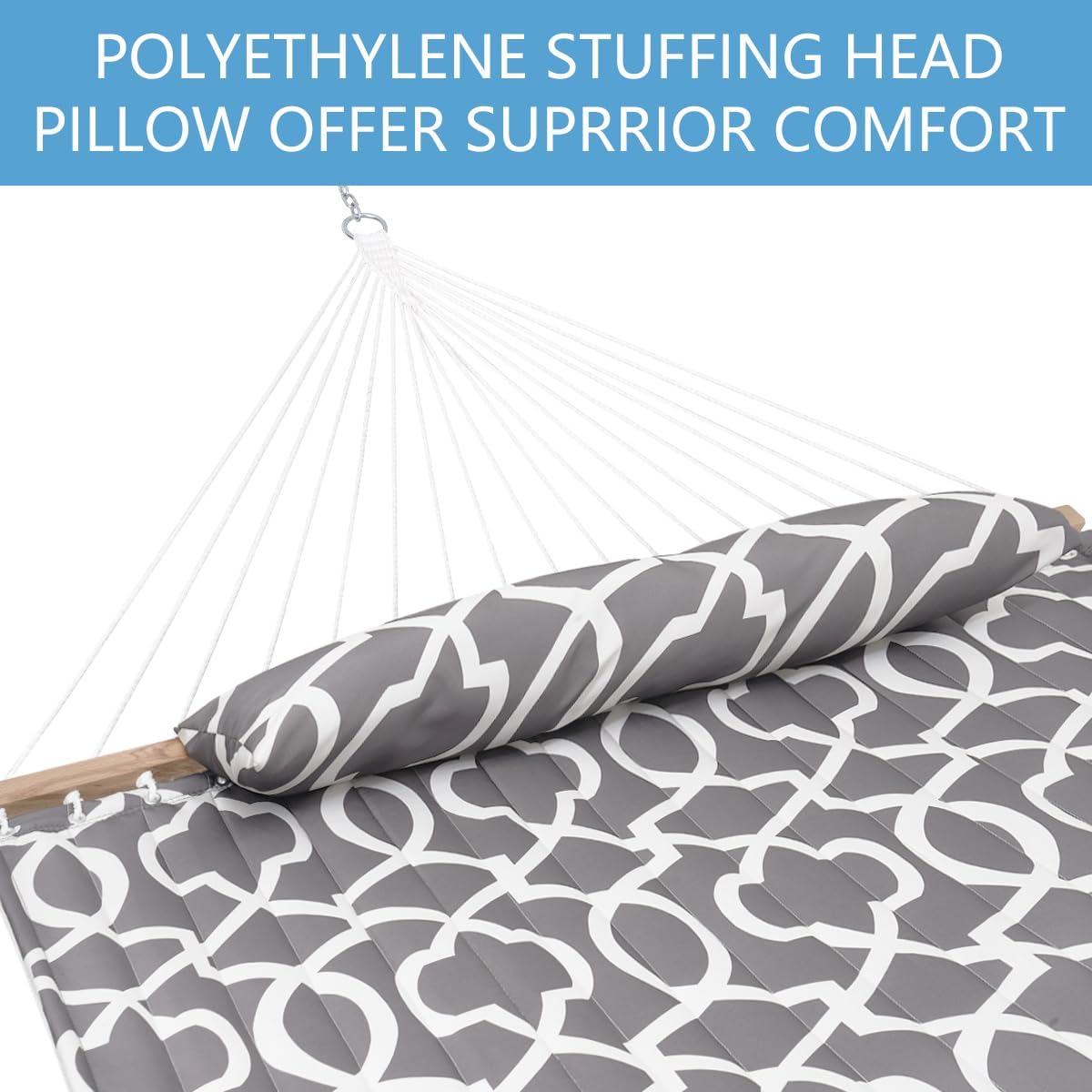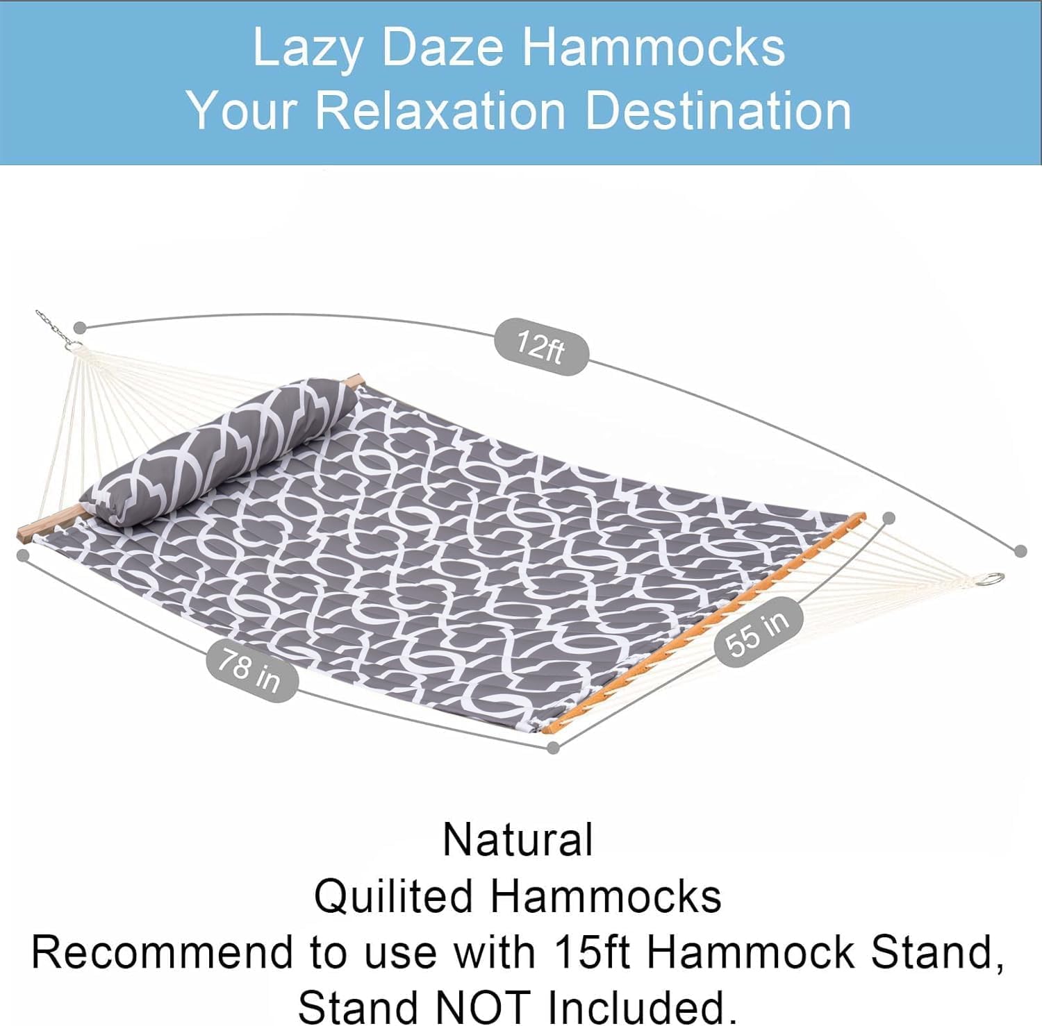 Lazy Daze Hammocks 12FT Quilted Fabric Hammock with Pillow, Double 2 Person Hammock with Spreader Bar for Outdoor Outside Patio Garden Yard HMQF-001GF
