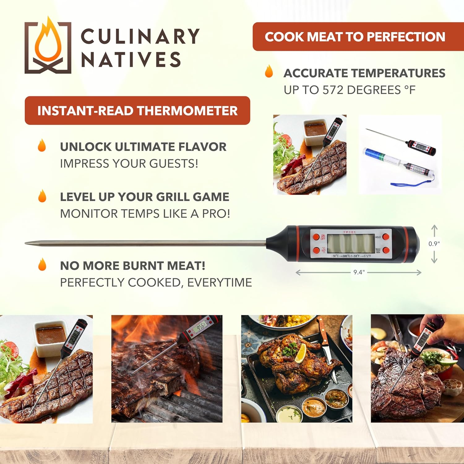 - π₯ INSTANT-READ THERMOMETER - Track temps like a pro with the meat thermometer. Get accurate readings to 572Β°F. Impress your guests and cook meat to perfection! Add crisp, crunch, & character to every meal. Perfect for barbecues, ovens, smokers & grills. Elevate your grill game with the ultimate BBQ smoker accessories.