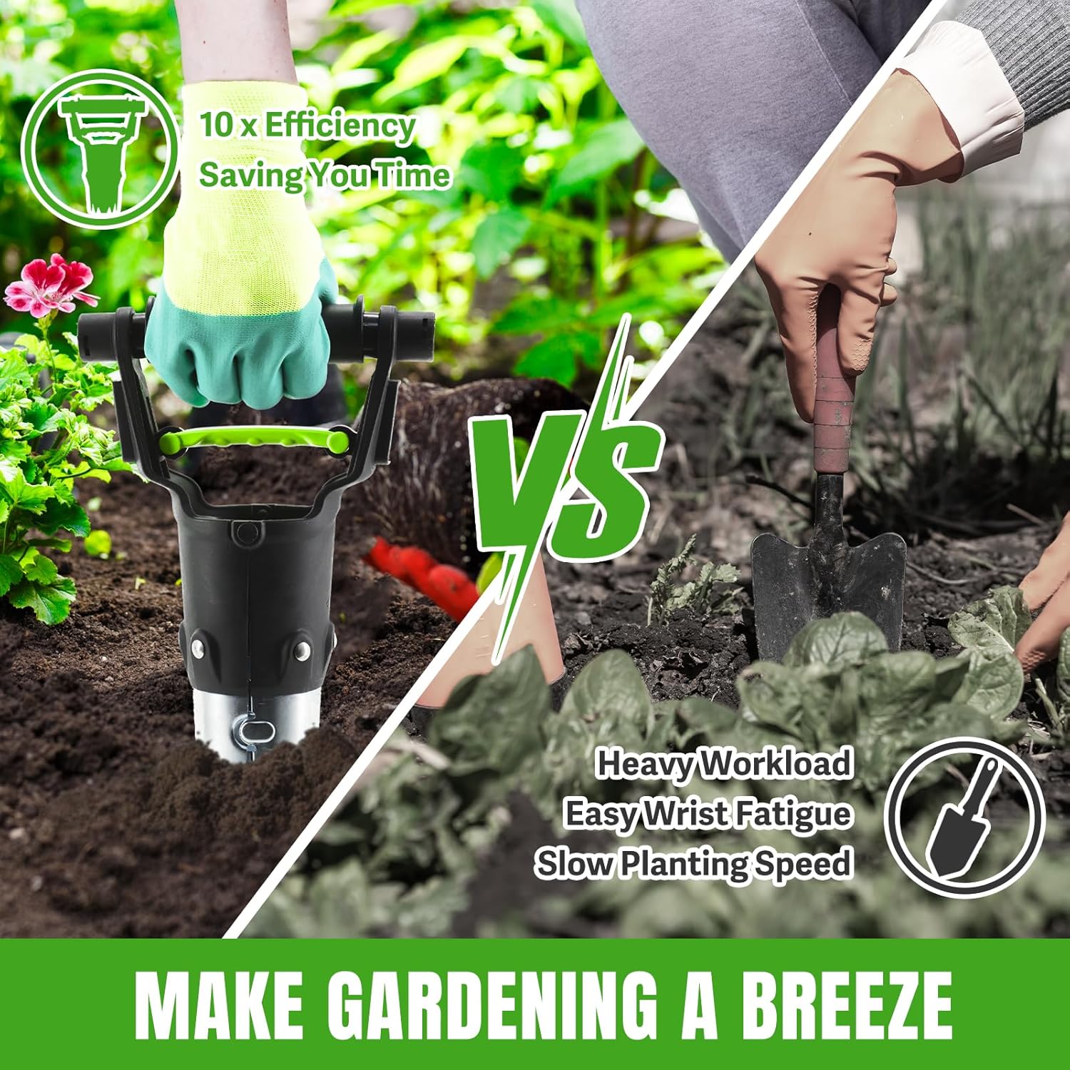 - EFFICIENT TRANSPLANTING: Ordinary digger shovel often creates holes that are excessively wide and sometimes not deep enough. This garden bulb planter tool is fantastic—simply twist and turn it once in the ground, and you'll have the perfect-depth hole for planting bulbs. The Automatic soil release mechanism accelerates the planting process, saving a considerable amount of time.
