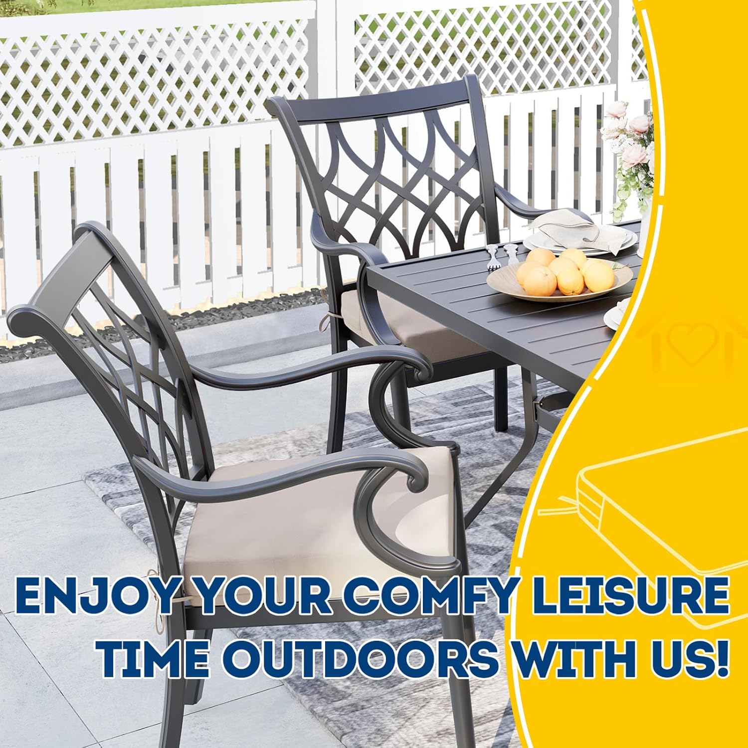• Wide Use & Tips: These outdoor dining chair cushions fit pools, patios, balconies, decks, backyards, and gazebos. Foam inserts and covers are packed separately in bags and placed in one box—check all parts. Easy assembly required