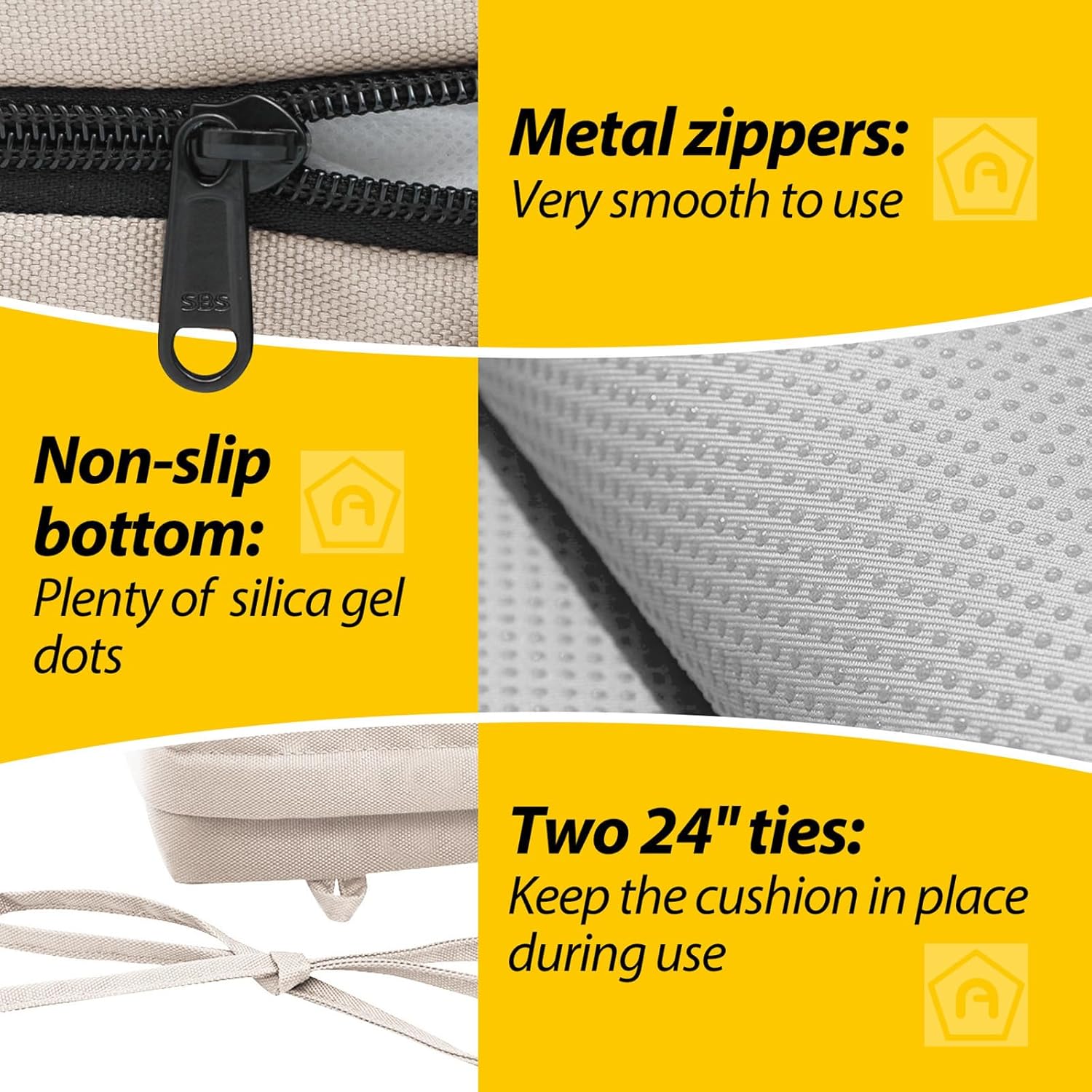 • Non-slip Ties and Piped Edge: The two non-slip ties can be fastened to your furniture to keep the outdoor cushion in place
