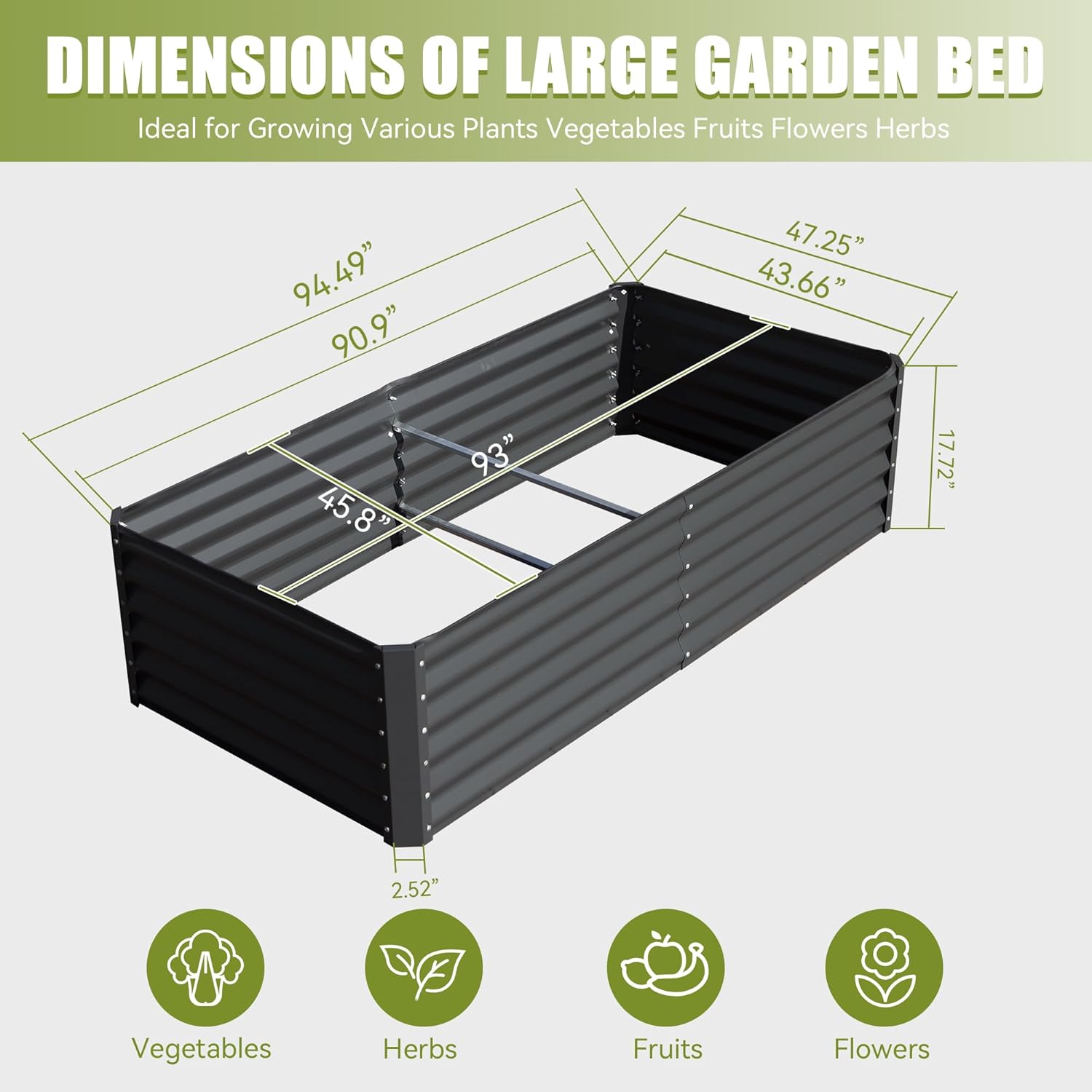 Domi Galvanized Raised Garden Bed, Outdoor Planter Garden Boxes Large Metal Planter Box for Gardening Vegetables Fruits Flowers, Dark Grey (8x4x1.5ft)