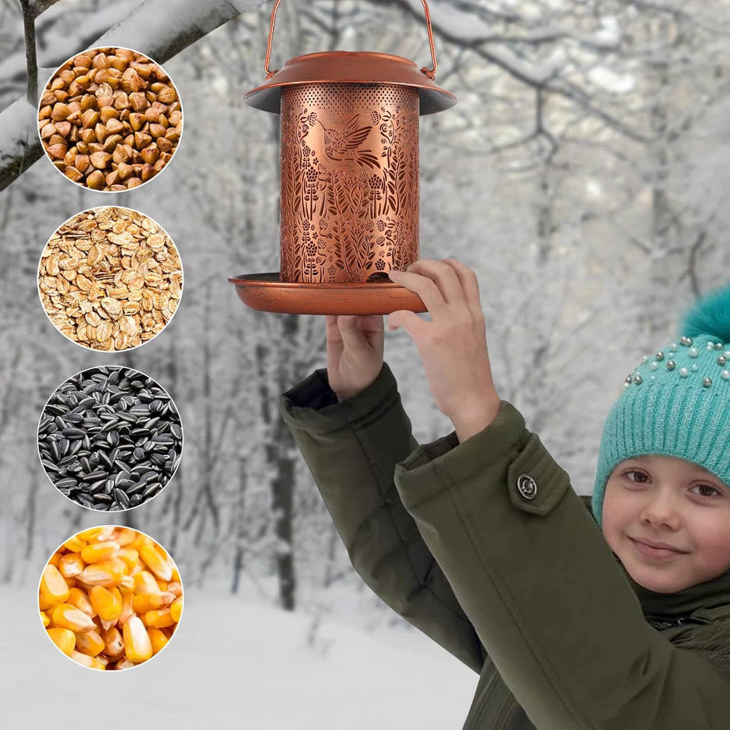 - 【Imaginative Outdoor Decor】Retro copper bird feeder, it's appearance with irregular flight track pattern, the solar light will project warm and bright light after dark, projecting the pattern of Hummingbird flying on the ground. Whether placed on the ground or hunging on the tree, it's perfect for decorating gardens, patios, yards and porches.