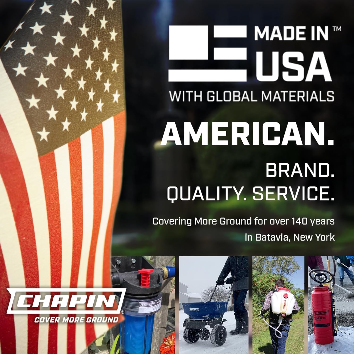 - MADE IN THE USA WITH GLOBAL MATERIALS: designed and produced in the USA with US-based customer service and technical support, located at Chapin’s home base in Batavia, NY; backed by Chapin’s 1-year limited warranty