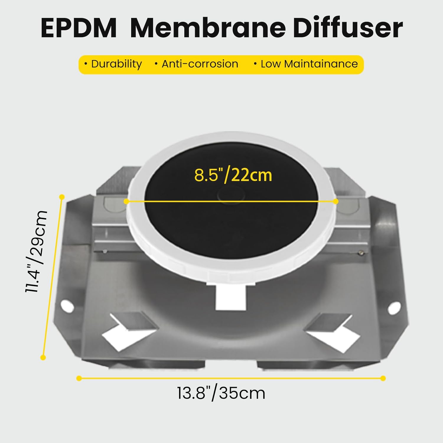 - Easy Installation — With the foot pads and silencer installed already, just connecting the air hose with the air-release connector on the air compressor by a metal clamp and connecting the air hose with the connector on the air diffuser via a metal clamp, plug the power cord to the socket and turn on the switch on the electrical box, the pond aerator for outdoor ponds could start to work