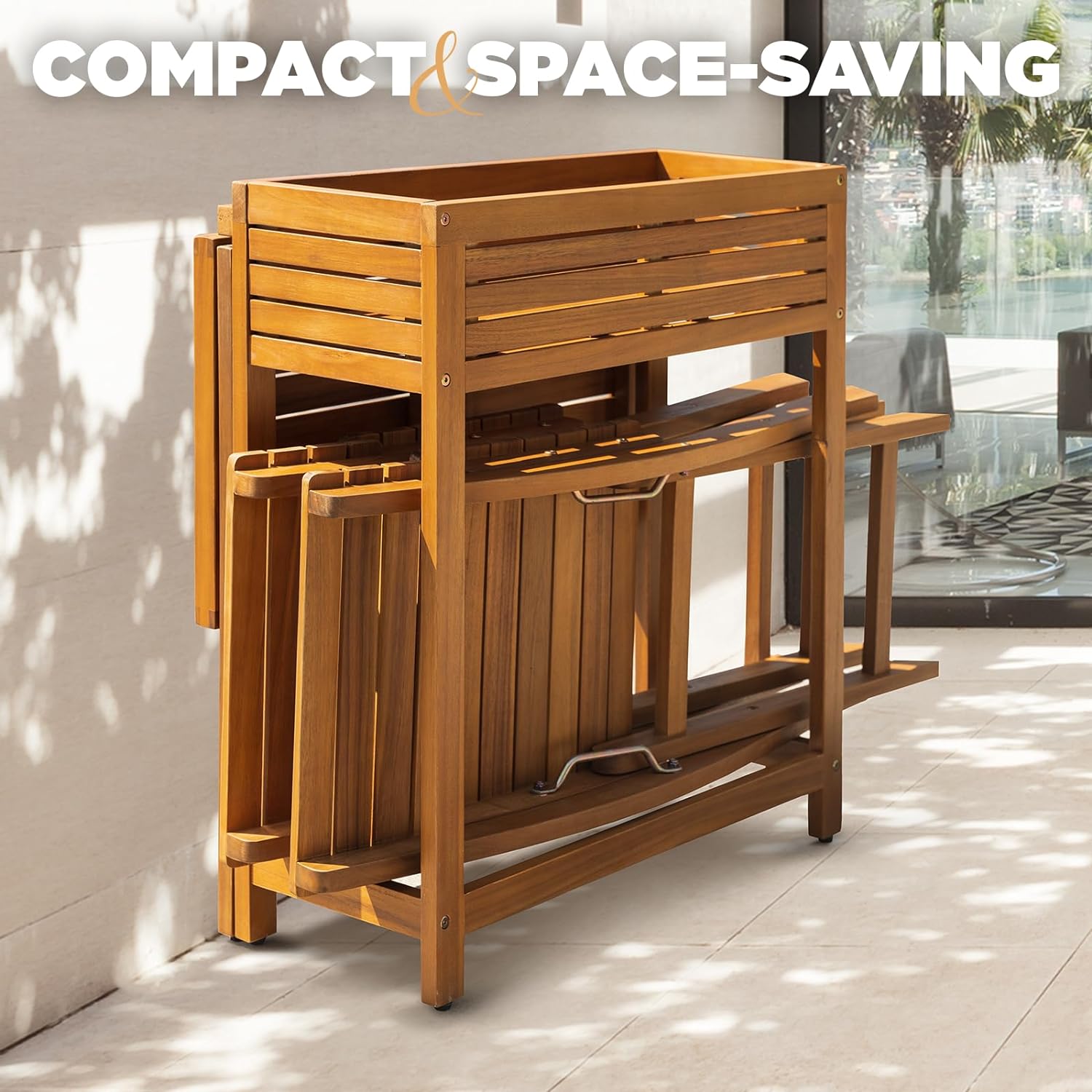 - FSC-CERTIFIED ACACIA WOOD: Sustainably sourced, FSC-certified acacia wood ensures style and durability in our folding bistro set; Elevate your outdoor space with our sustainably friendly, high-quality wood furniture.