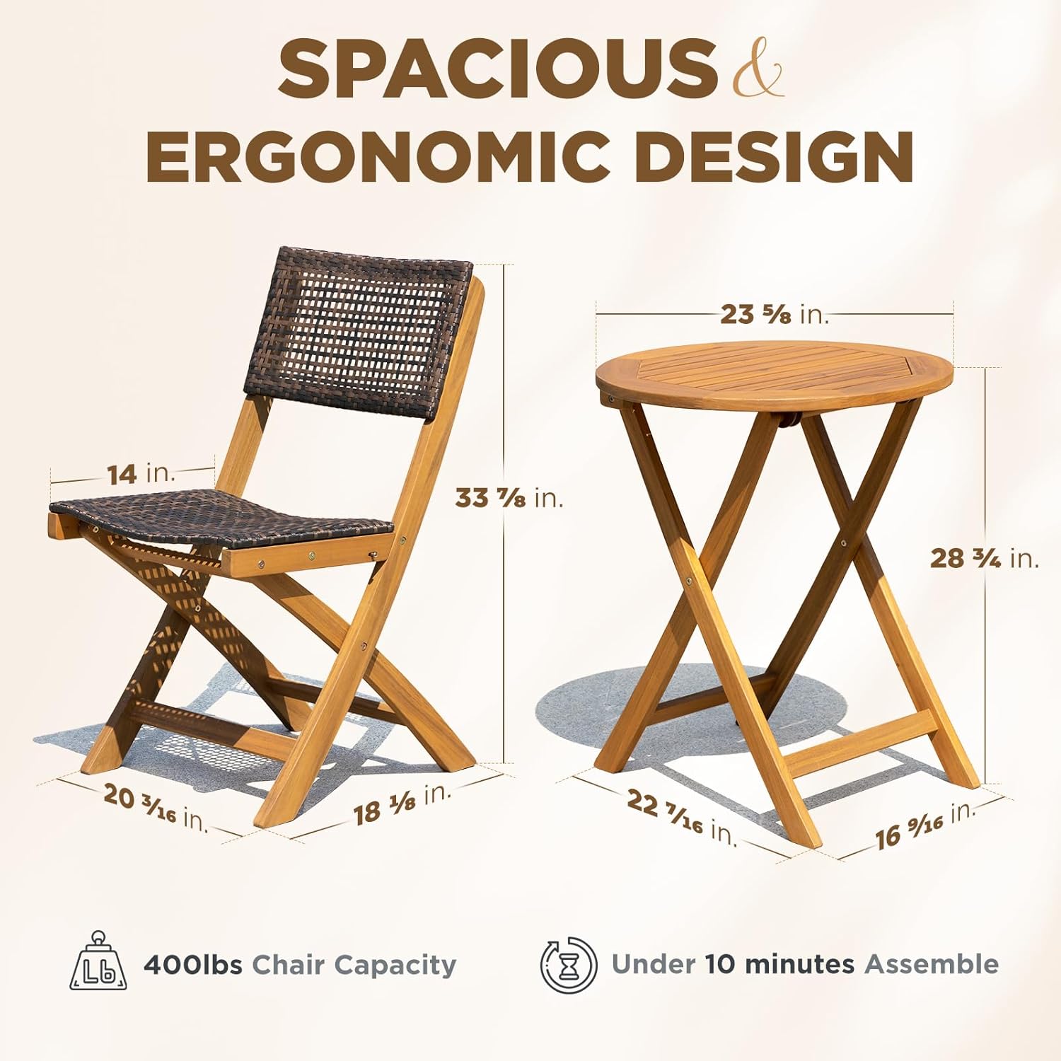 IDZO Wood Wicker Design Heavy Duty 400lbs Capacity Premium Patio Bistro Set 3 Piece Outdoor