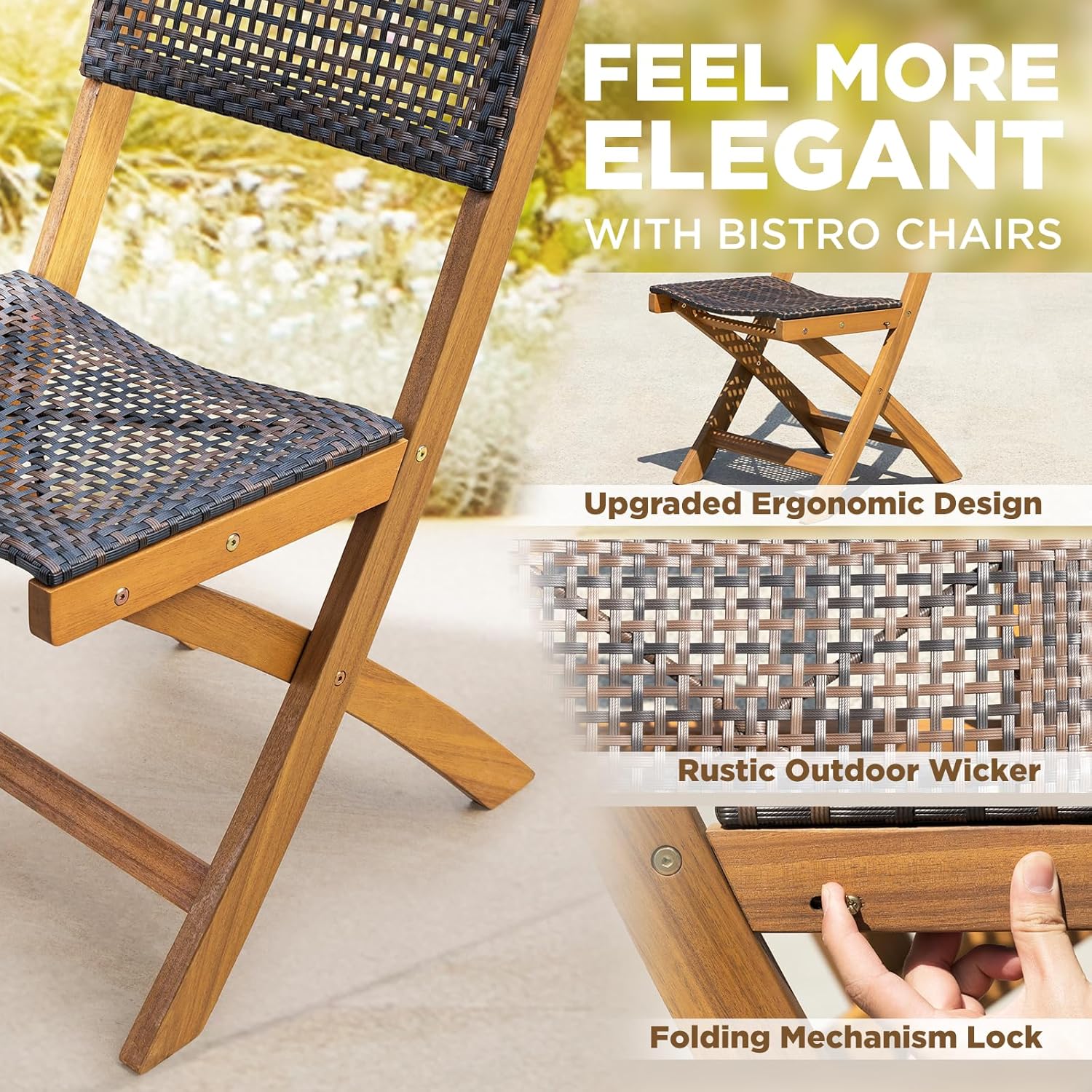 - DURABLE FOLDING BISTRO SET: Designed for airflow, our folding bistro set keeps you cool even on hot days. The ergonomic backrest and wide armrests provide exceptional comfort, making an ideal spot to relax and unwind after a long day.