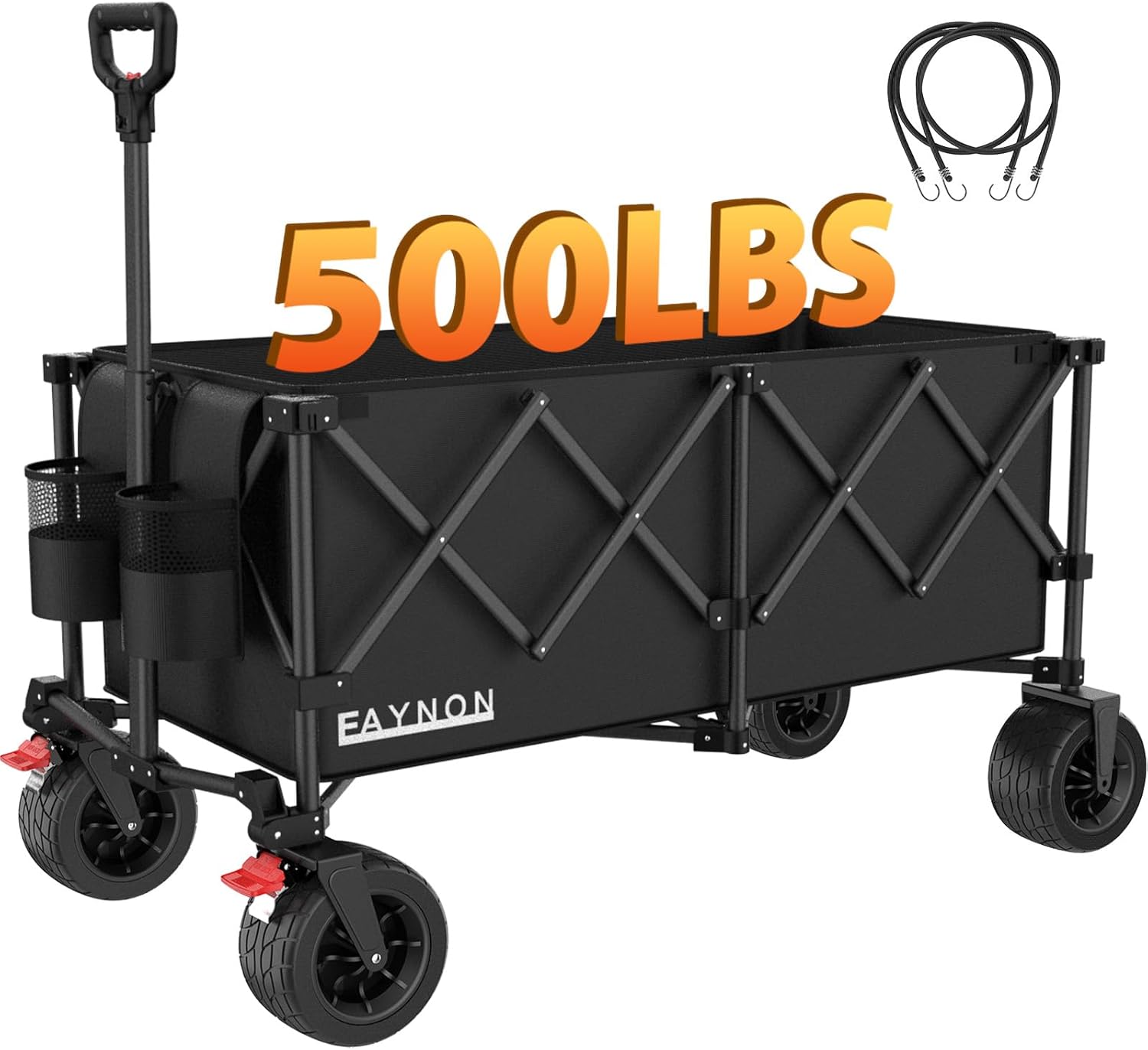 - [Extra Large Capacity] :EAYNON Collapsible Wagon with high quality heavy duty metal frame to load up to 500LBS/227 KG and largest storage space can reach 220L/7.8CU.FT,wagon cart has a 100% larger capacity than other standard sized wagons,with plenty of space to hold stuffs,You can use it with confidence.