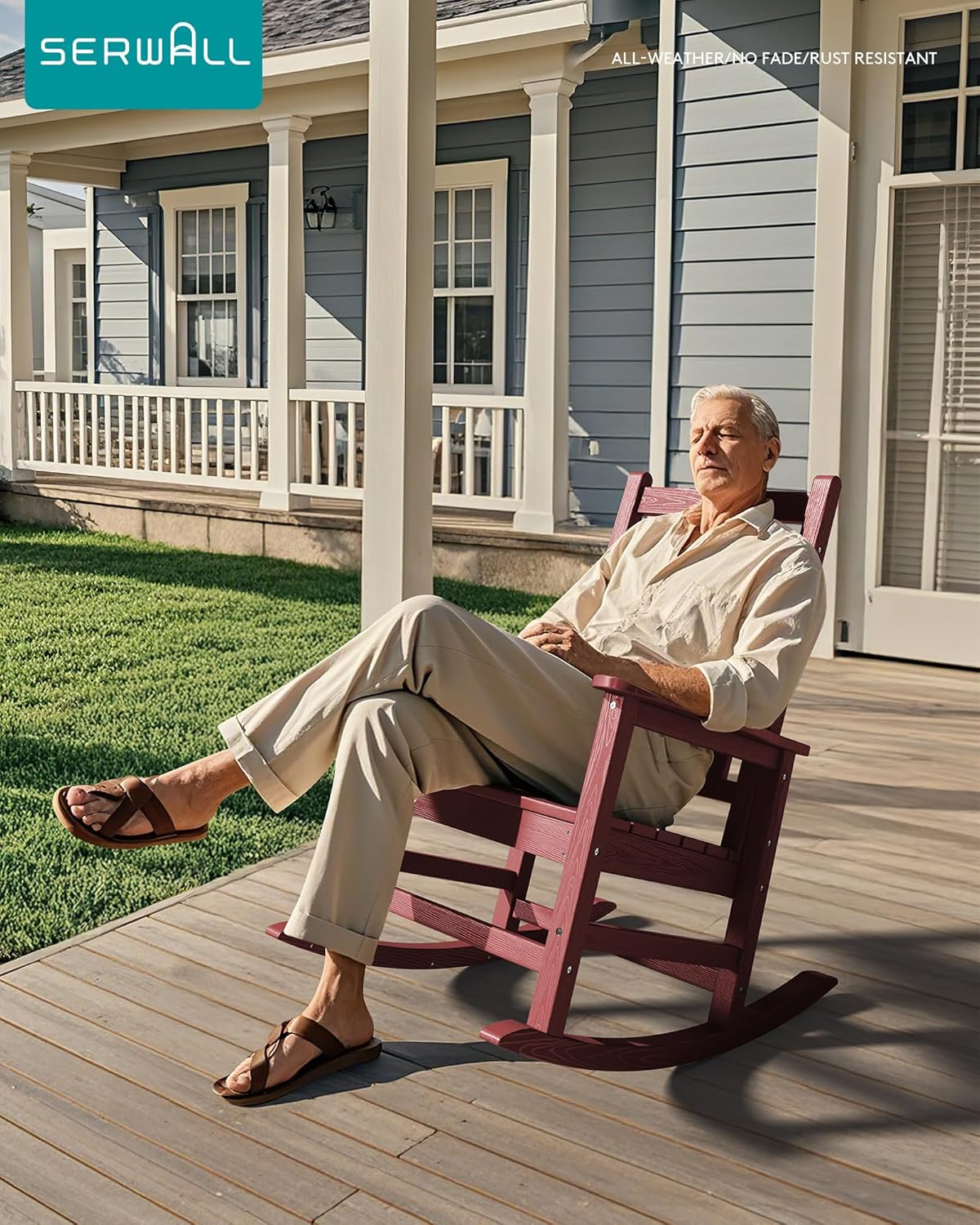 - Details Make It Successful: This porch rocker features an ergonomic curved backrest—unlike traditional straight-back designs—providing superior reclining comfort. With wide armrests and a contoured seat, the SERWALL rocking chair alleviates fatigue. (Tip: Pair it with our cushion [ASIN:B0D7Q1V8ZC] for added comfort.)