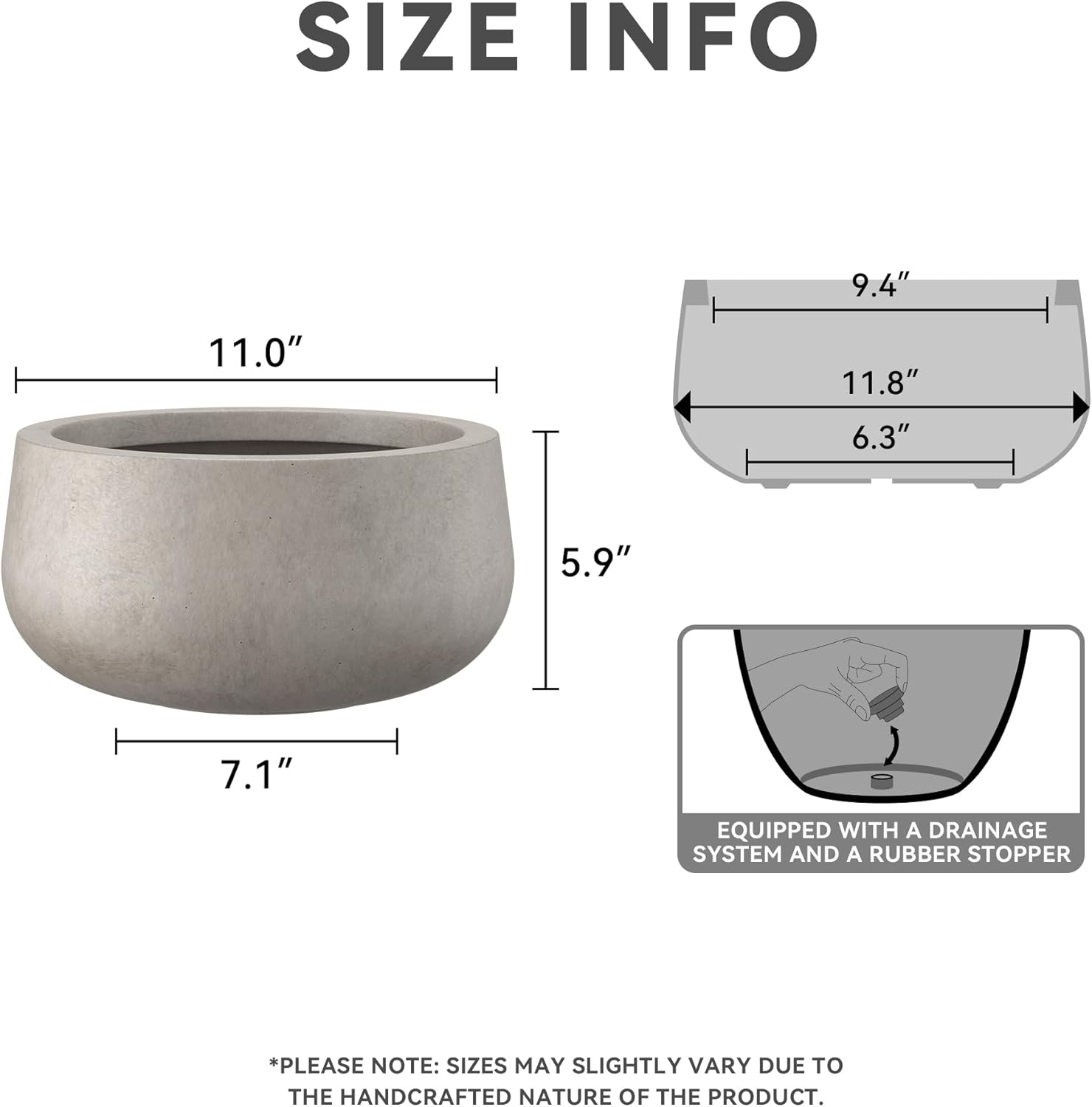 Kante 11.8" Dia Round Concrete Planter, Cement Plant Pots with Drainage Hole and Rubber Plug for Outdoor Indoor Garden Home, Modern Curvaceous Design, Weathered Concrete