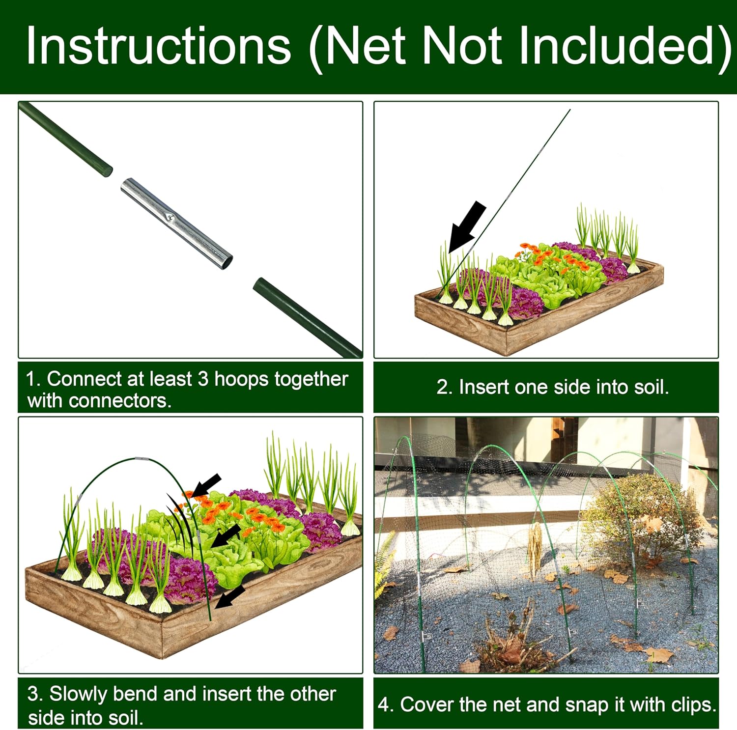 - DIY & Reusable: Each 17" rod connects effortlessly, allowing you to bend and adjust the hoops to any desired width or height; After the growing season, disassemble for compact storage and reuse year after year