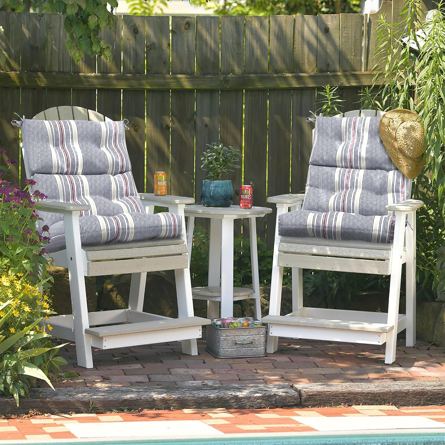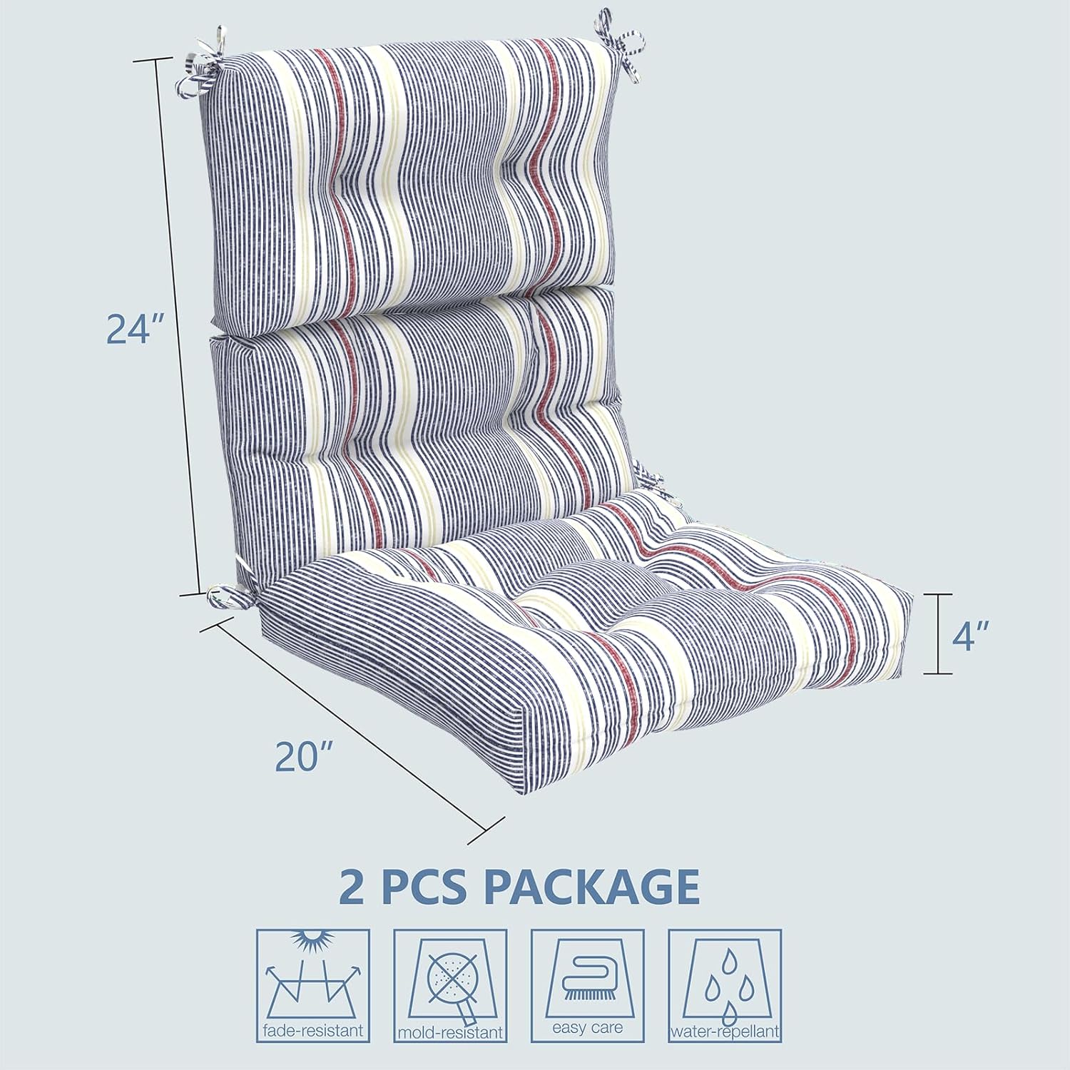 LVTXIII Outdoor Tufted High Back Cushions Set of 2 Patio Seasonal Replacement Rocking Chair Cushion with Ties, Solid Seat and Back Chair Cushion, (44” L x 22W”, Stripe Denim Blue)