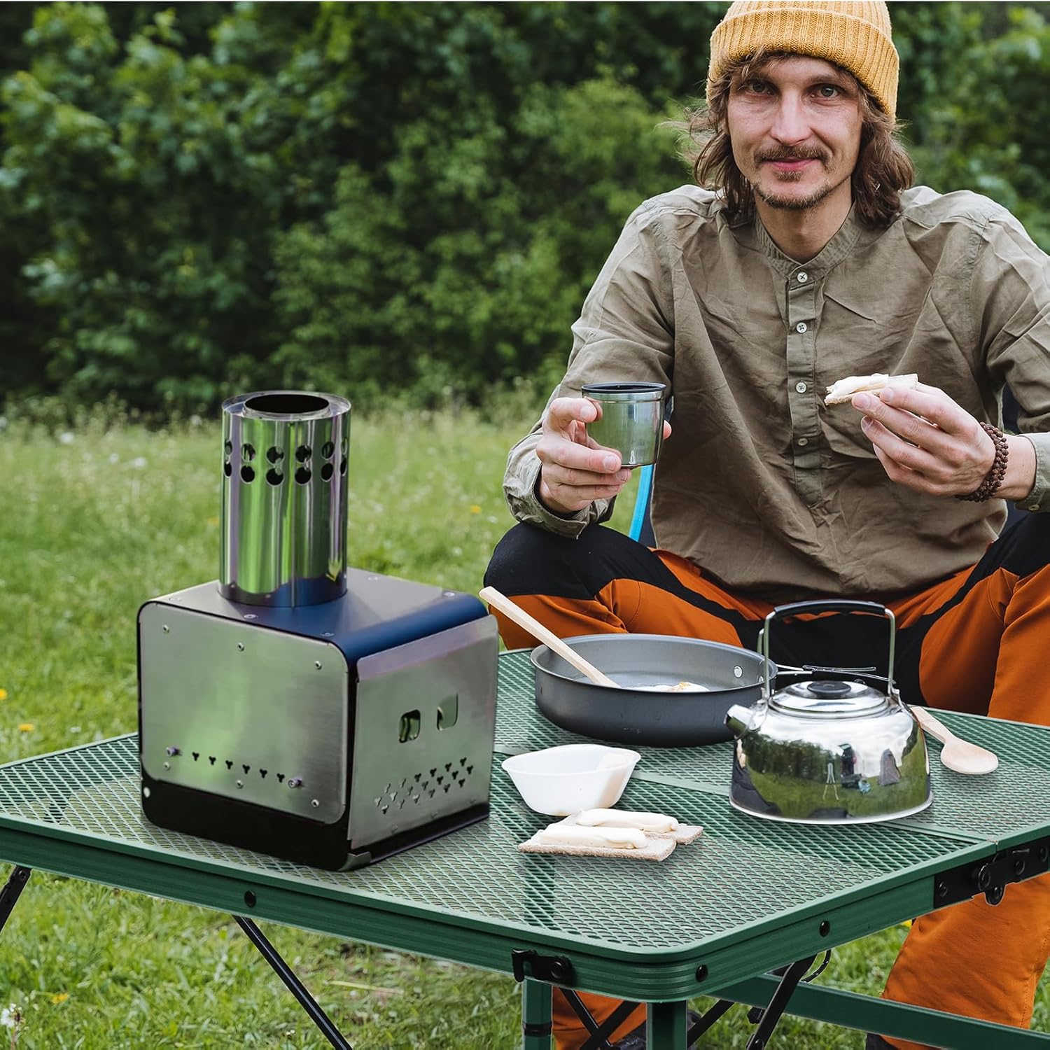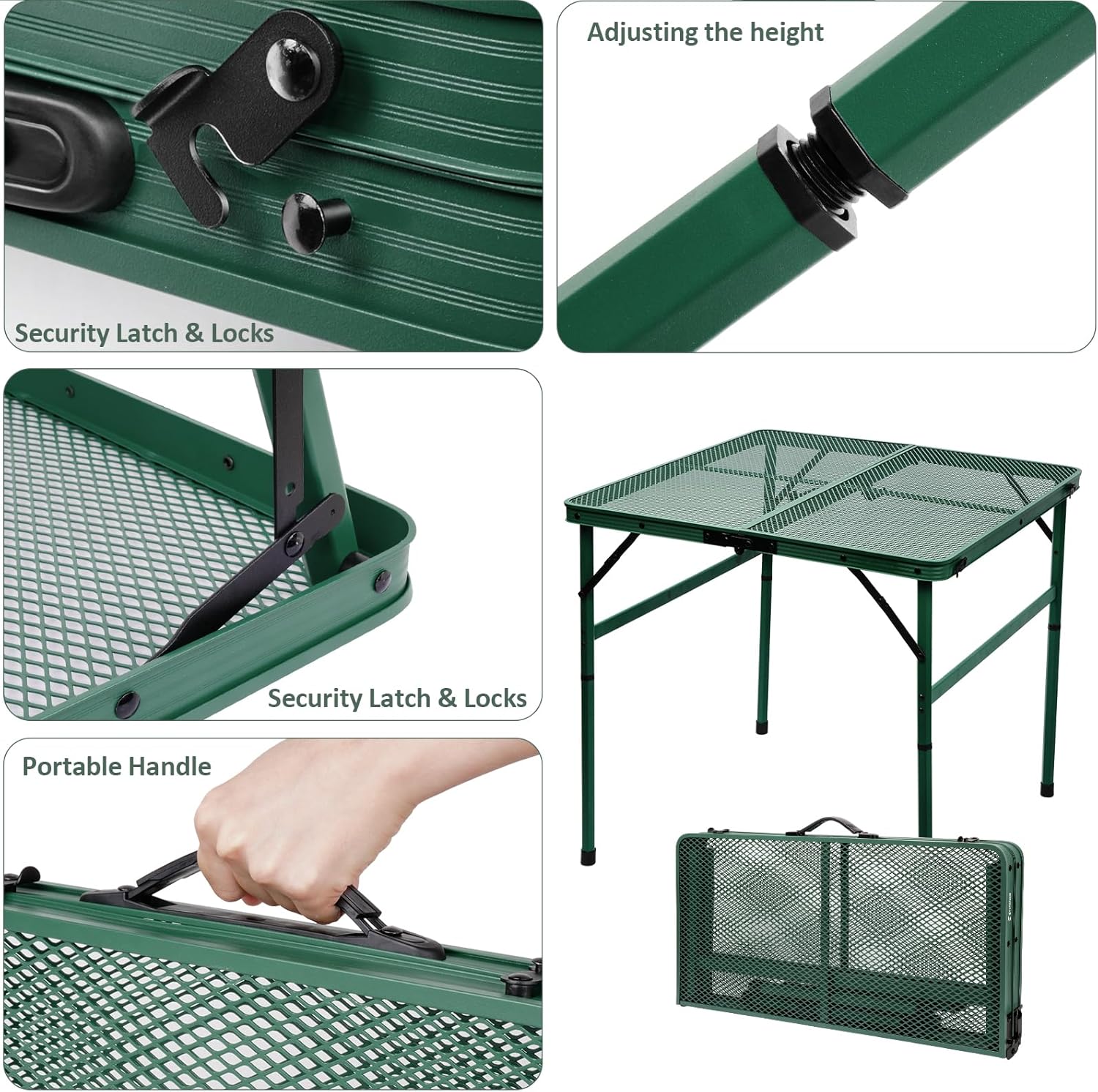 - [Adjustable Grill Table]The folding camping table allows you to adjust the height of the camping table from an initial height of 12.2 inches to a height of 22 inches,providing a perfect surface for you to picnic on the grass or grill standing up