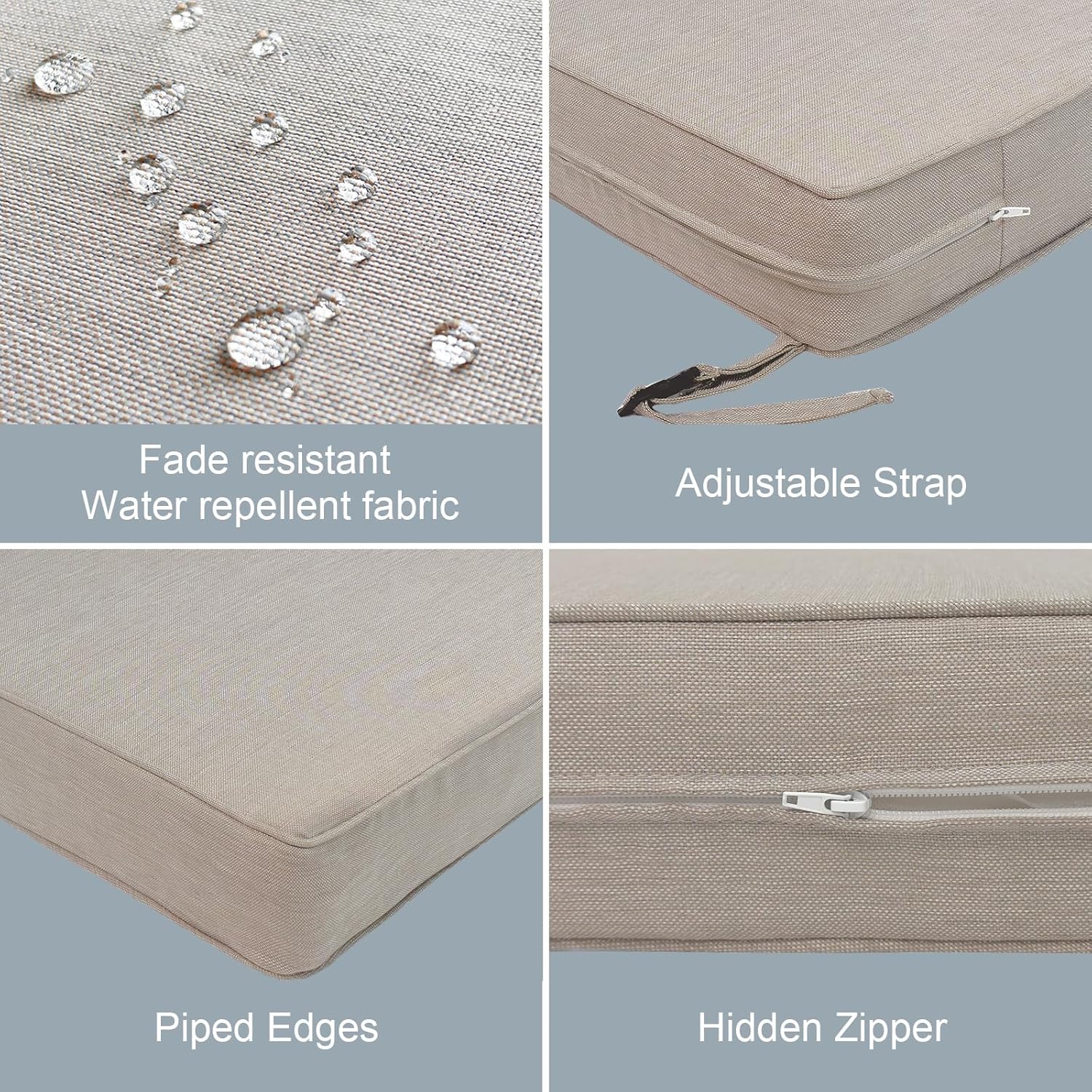 - NON-SLIP DESIGN: Each outdoor furniture cushion with adjustable straps help keep cushion securely attached to your chairs. You can sit back and relax without worrying about the cushions shifting or slipping